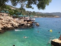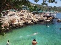We decided to spend the heat of the day with our books at this little beach. Nice and cool under the umbrellas and the water is warm and cold all at the same time. Fresh water springs are feeding into the cove making it spritzing.
