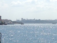 As we passed the ferries we jumped on literally as one was leaving and took a ride down the Bosphorus. So many trees and castles!