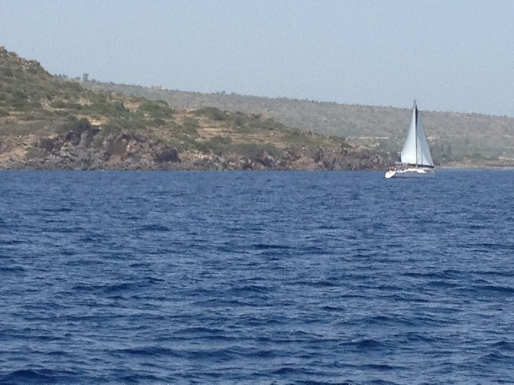 We decided to sail up the coast. The hills are covered in olive trees and cyprus – and an occasional villa in there too.