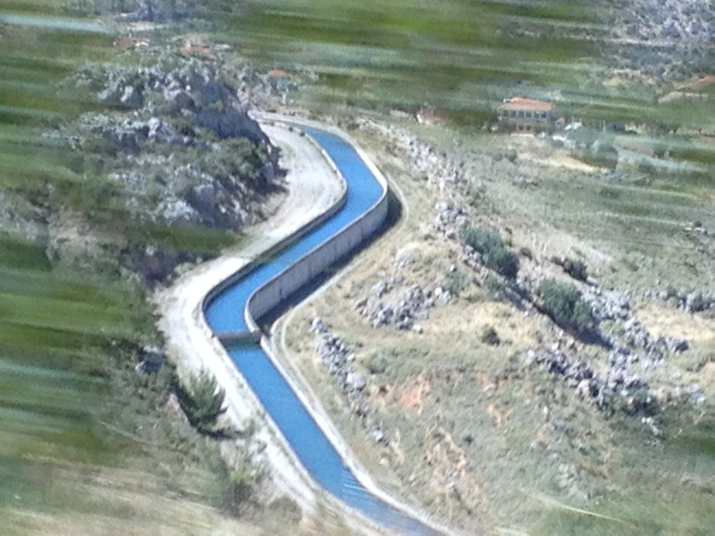 There is a viaduct running through the hillside and springs feeding it. The valley looks fertile and crammed with olive trees.