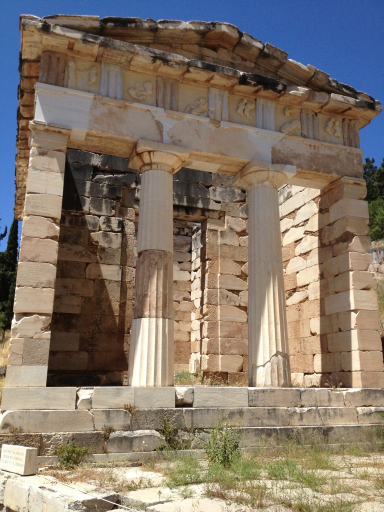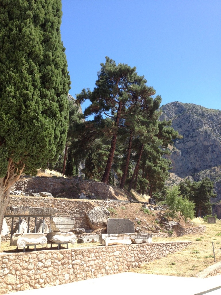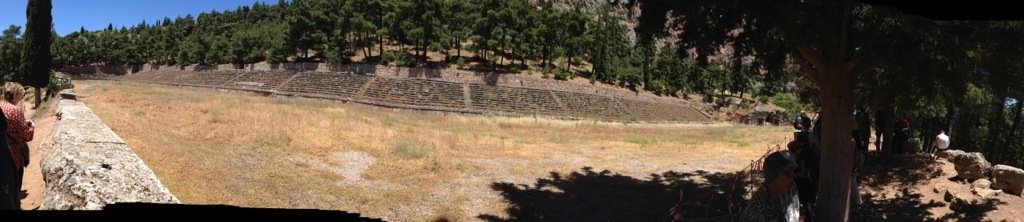The archeological site of Delphi is great with a new museum and then walk through into the site. French archeologists began work there 130 years ago and you can imagine their excitement when whole statues were uncovered in the dirt. A large stadium – athletics – is at the very top of the site as well as temples, treasuries and an amphitheater.
