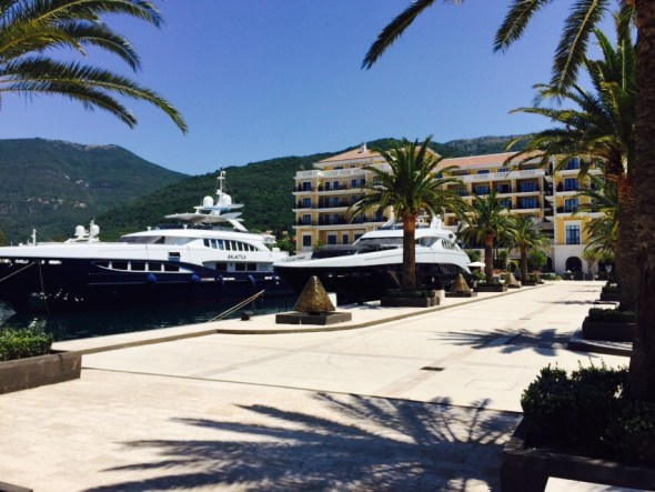 Porto Montenegro – we are berthed outside the Regent Hotel.