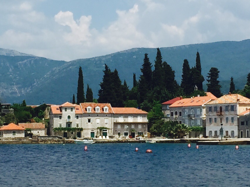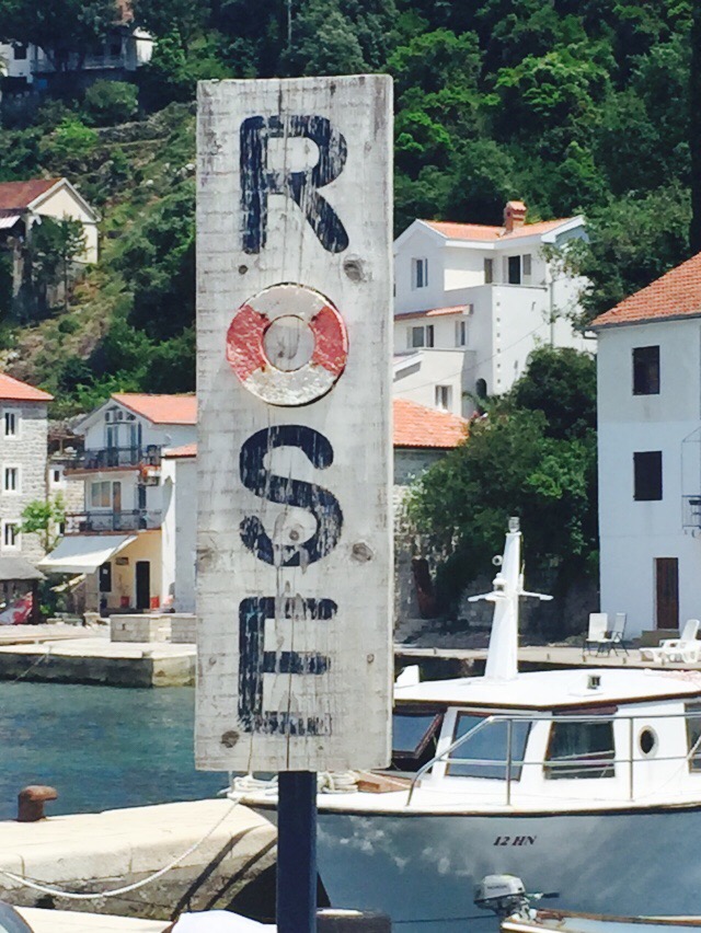 we are moored in a bay at the mouth of the Bay of Kotor. Rose – like the wine Ro- zay – a tiny Venetian village. It’s a testament to their building that these houses are still here 700 years later. Now being immaculately restored – stonemasons abound. This hotel on the point – Forte Rose – built from the old fort.