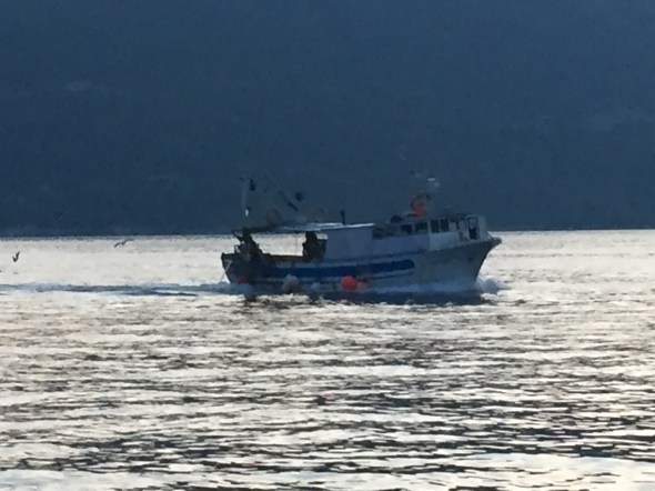 Fishermen returning and the gulls are waiting