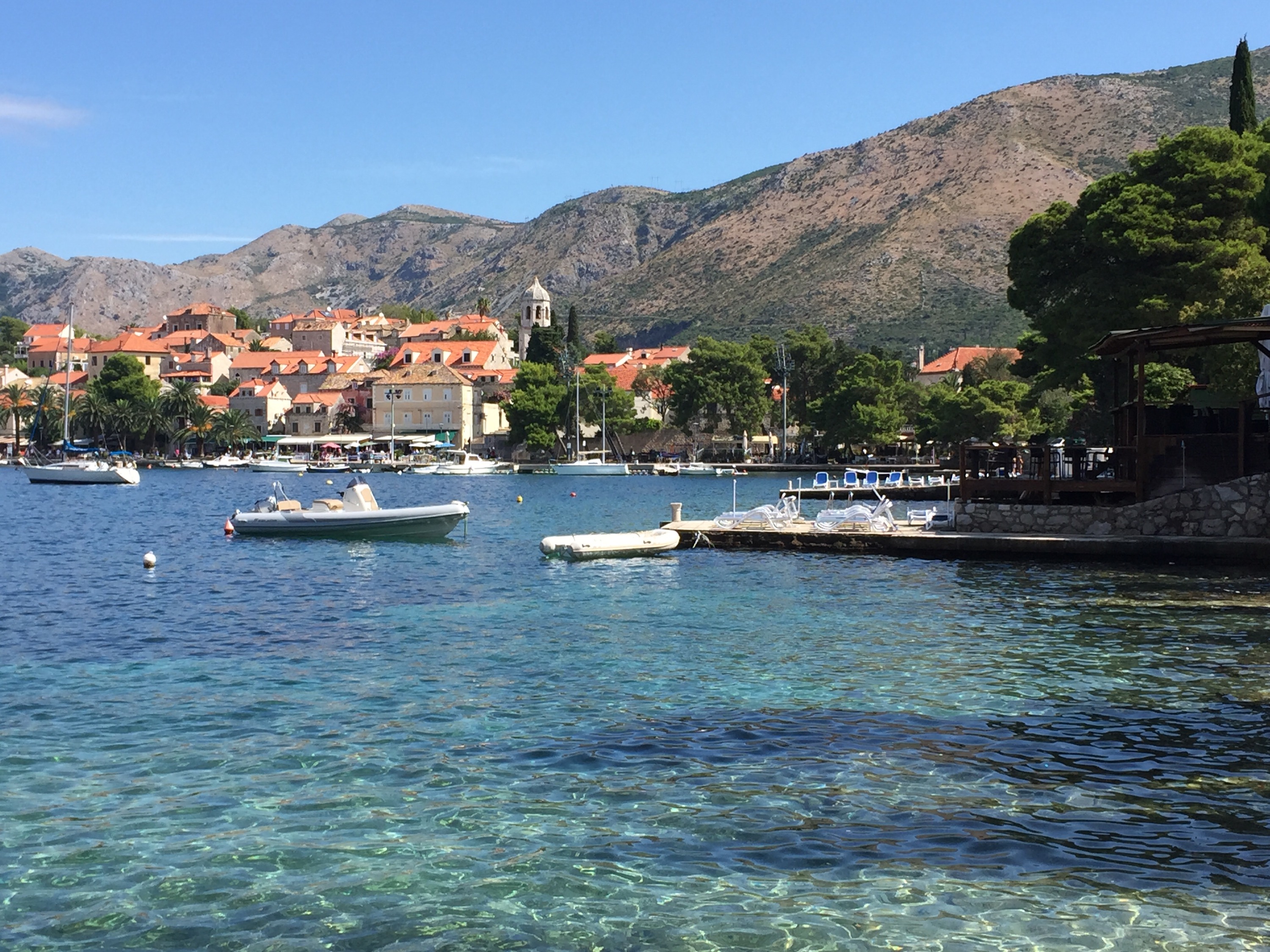 A gorgeous town close to Dubrovnik. We had a wander around, coffee, provisions – we needed sausage!