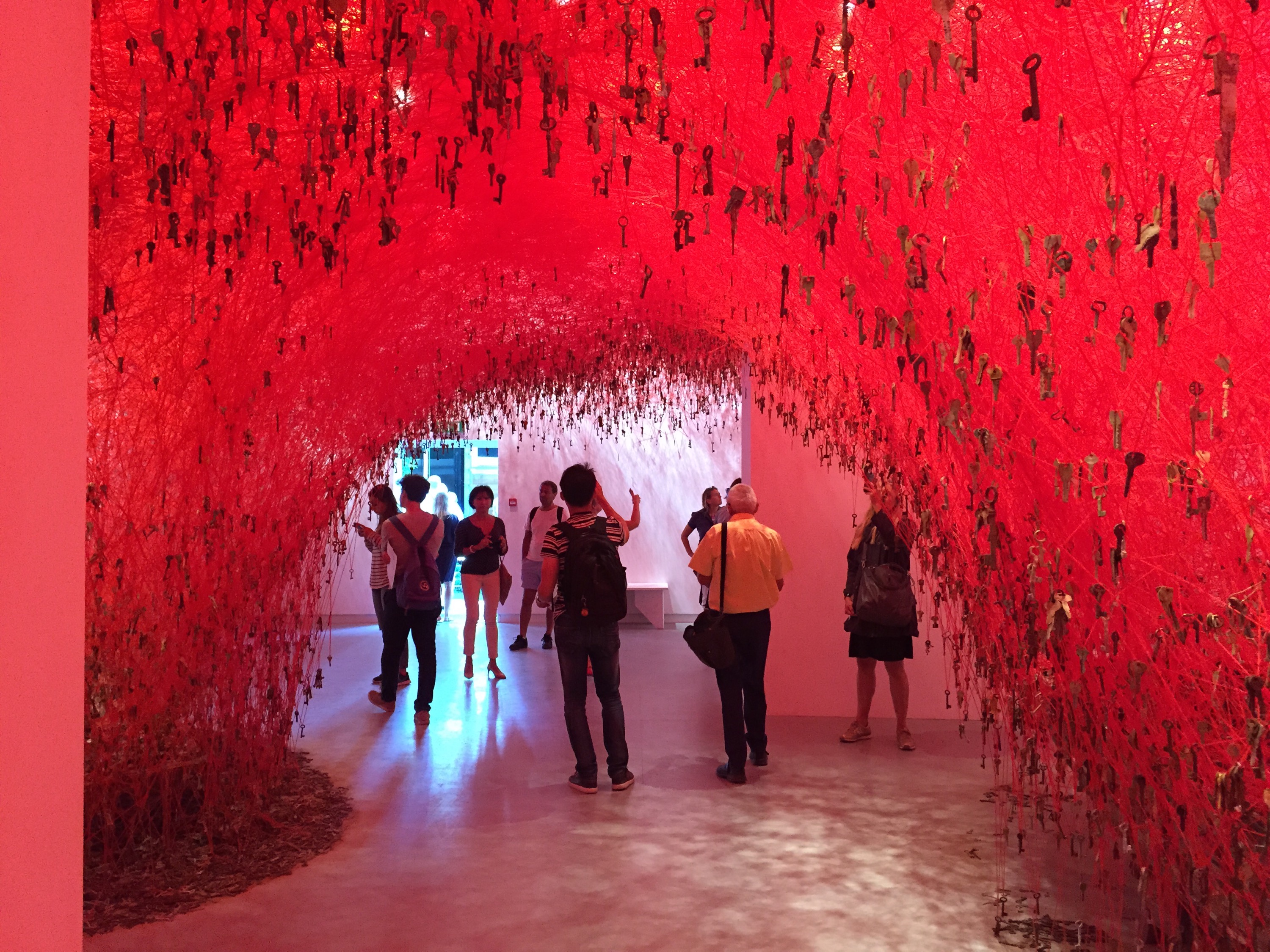The whole room is woven with string and old keys hanging from it