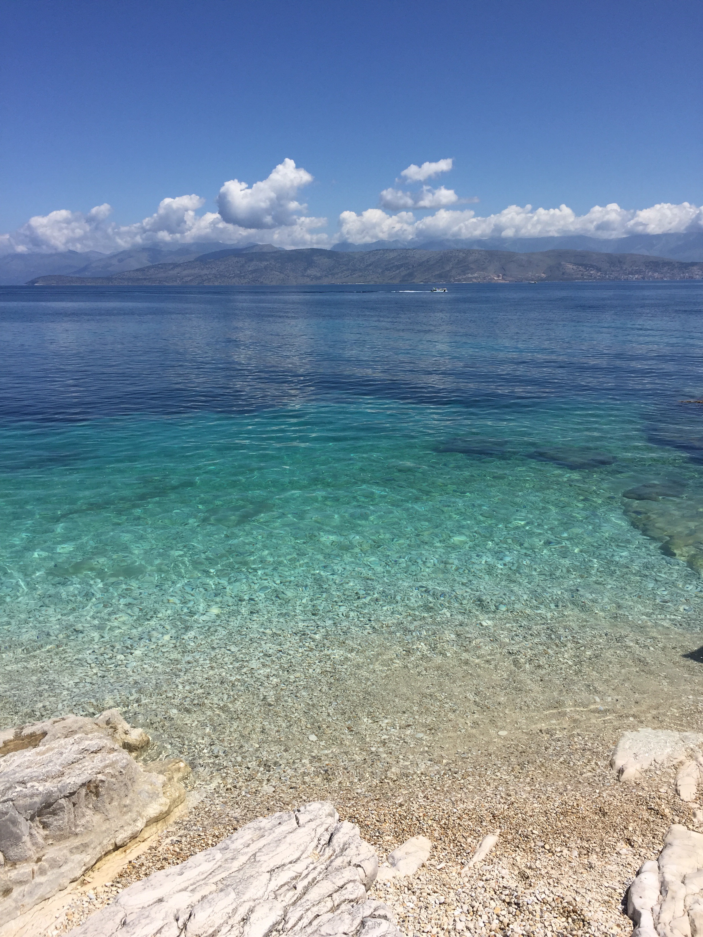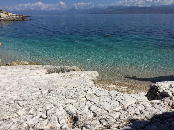 Here are some photos from Kassiope. It is my favourite beach here on Corfu. The white marble stones are hard under foot but with thongs on it is fine. Beautiful clear water, sparkling.