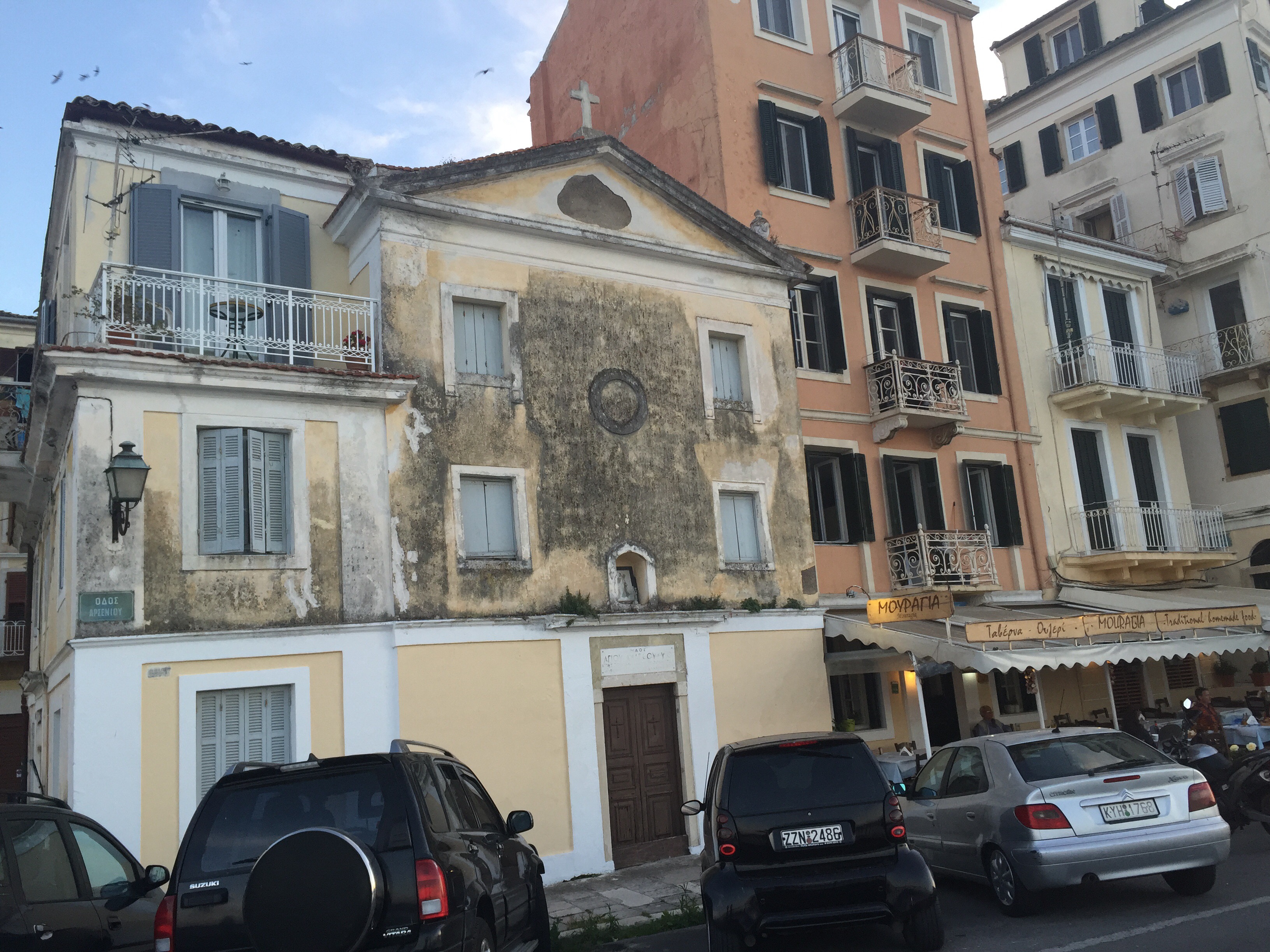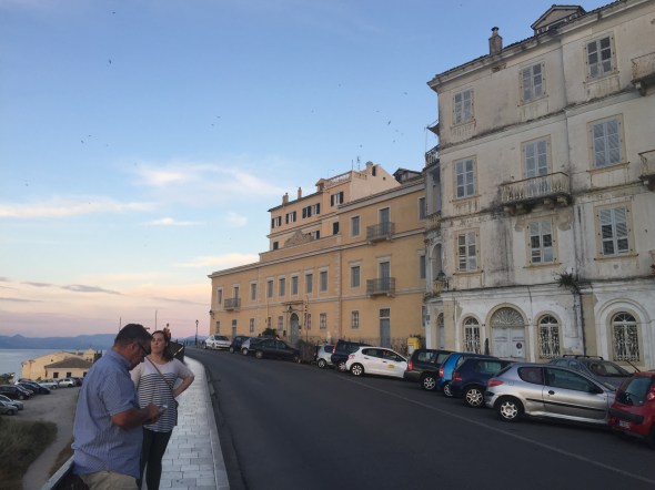 Here are some photos of Corfu Town at Sunset. It is s beautiful old town, faded and romantic. At sunset the swallows swoop and dive in their thousands around the rooftops.