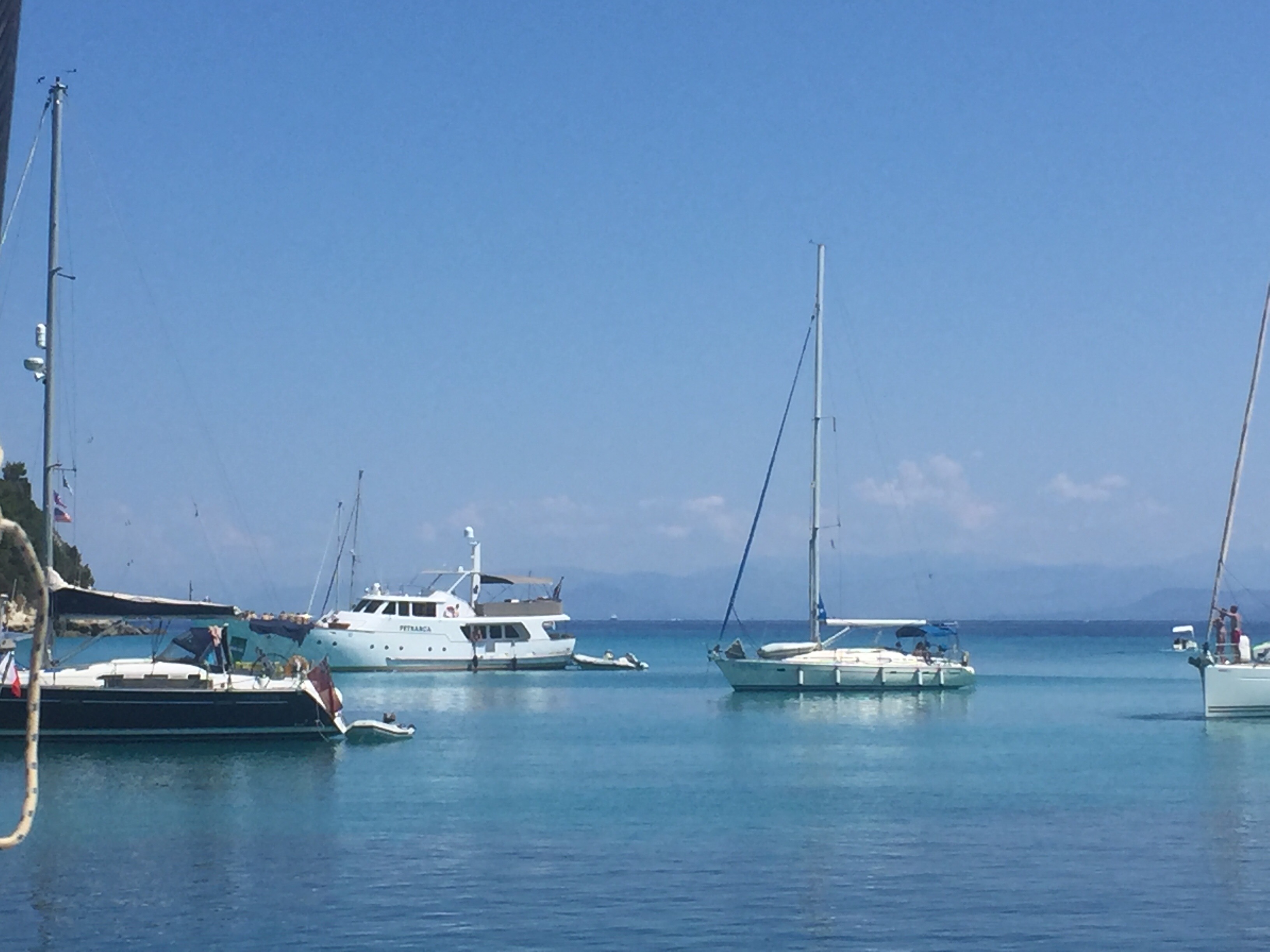 On Monday we sailed down to Paxos and headed into Lakka again. It’s hard to beat as an anchorage and a swimming spot. We are going to stay here s few days – the forecast keeps changing and any bad weather that looked possible keeps moving further away. Every day has been sunny and warm. We have been for a few walks, read a few books, swum, supped, eaten, slept and of course wi-fied. The kitchen that hopefully would be complete on our return has been held up by an incorrect appliance and a longer delivery date. Oh well – it happens.