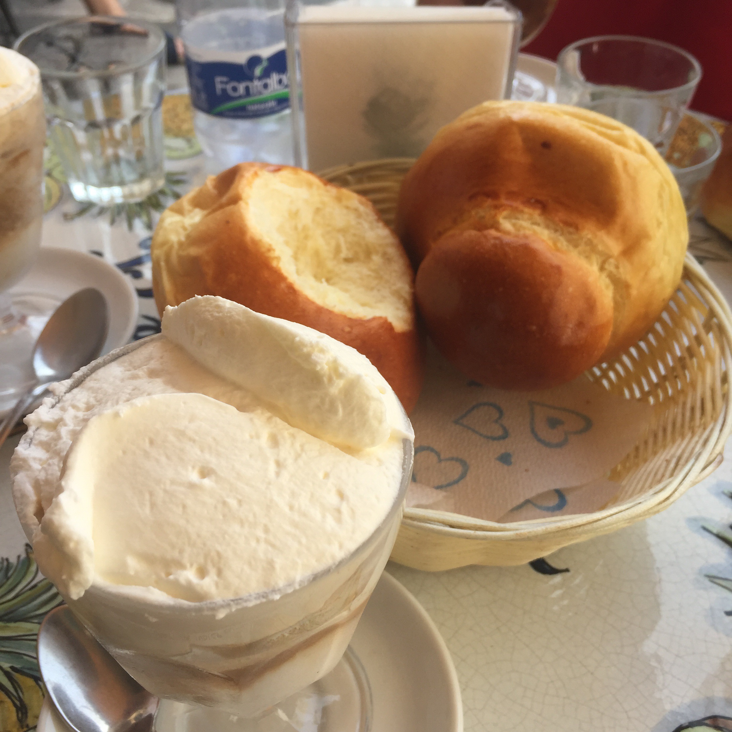 It’s just as well we are doing so much walking because we start the day with these amazing granites( granita). Apparently a Sicilian speciality – caffe and almond combo with cream on top served with brioche. There are many other flavours but we have swapped hot coffee for ice coffee for the moment.