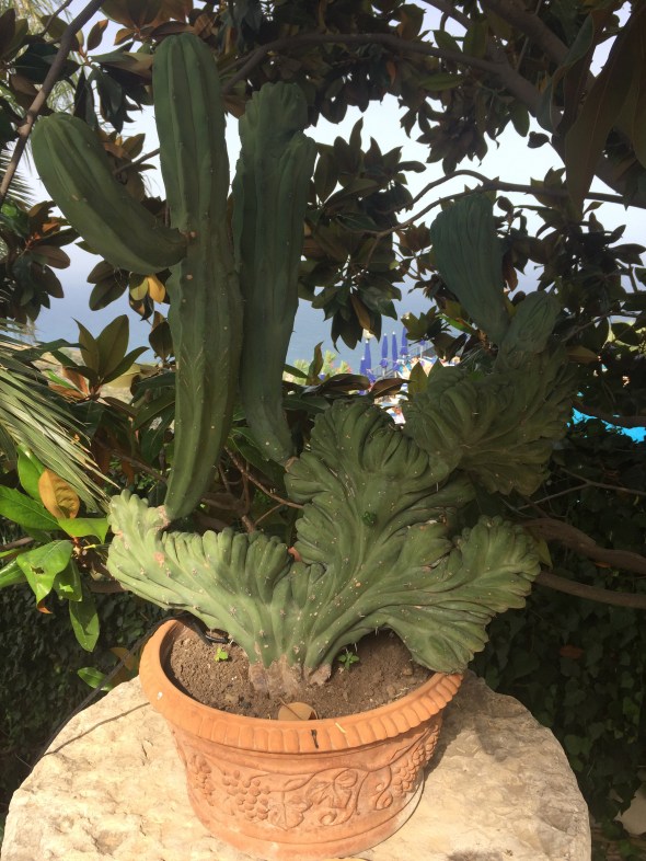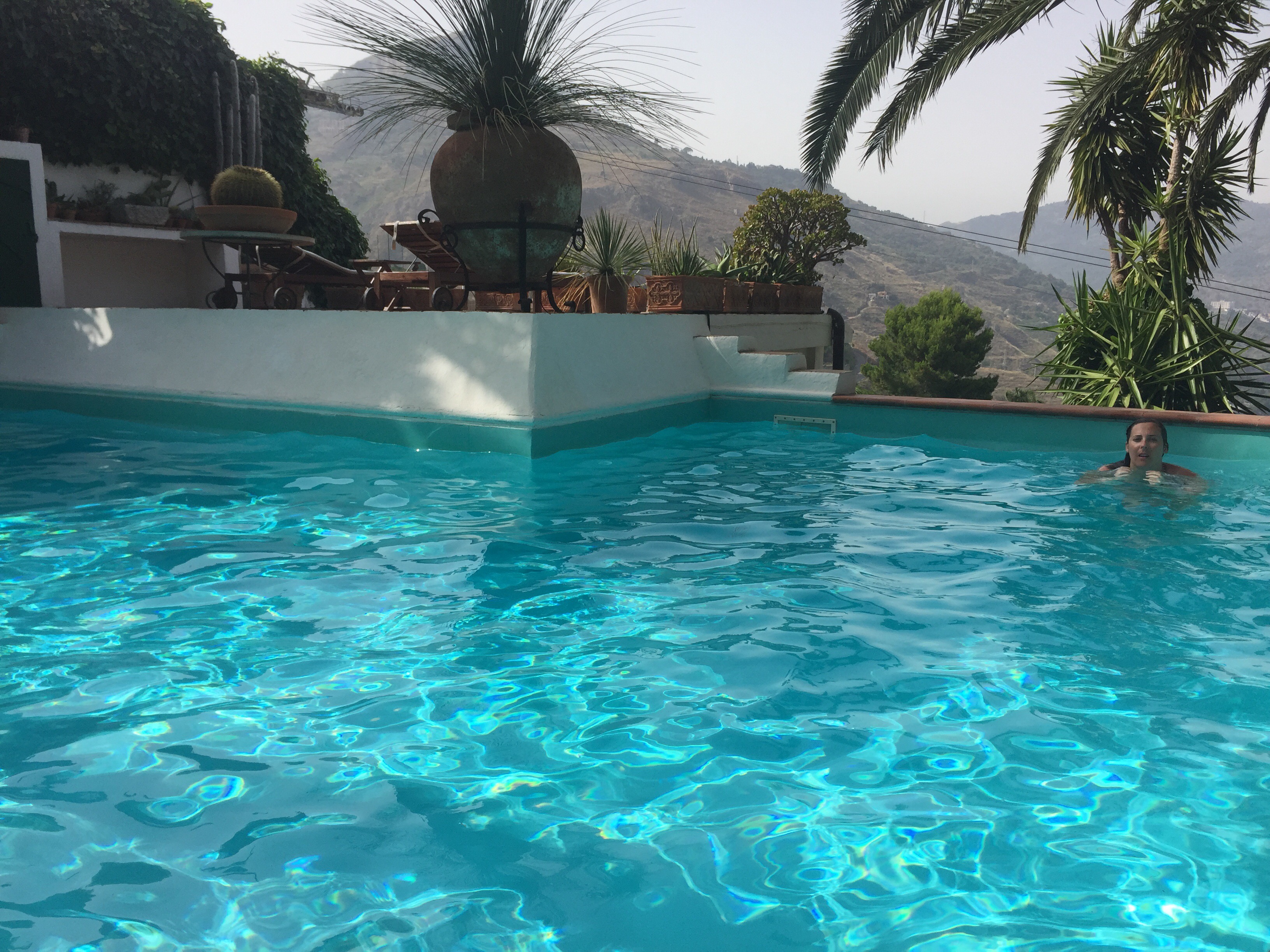 We are staying in a great apartment / look it up on AirBnb ‘Panoramic Apartment’. It’s a great 2 bedroom apartment with a big terrace looking over the hillside and sea – the Messina Strait – at night you can see the lights of Calabria . There is a pool and sun terrace and an interesting garden.
