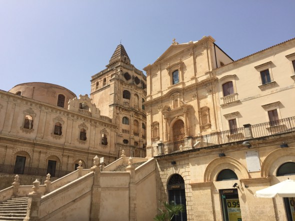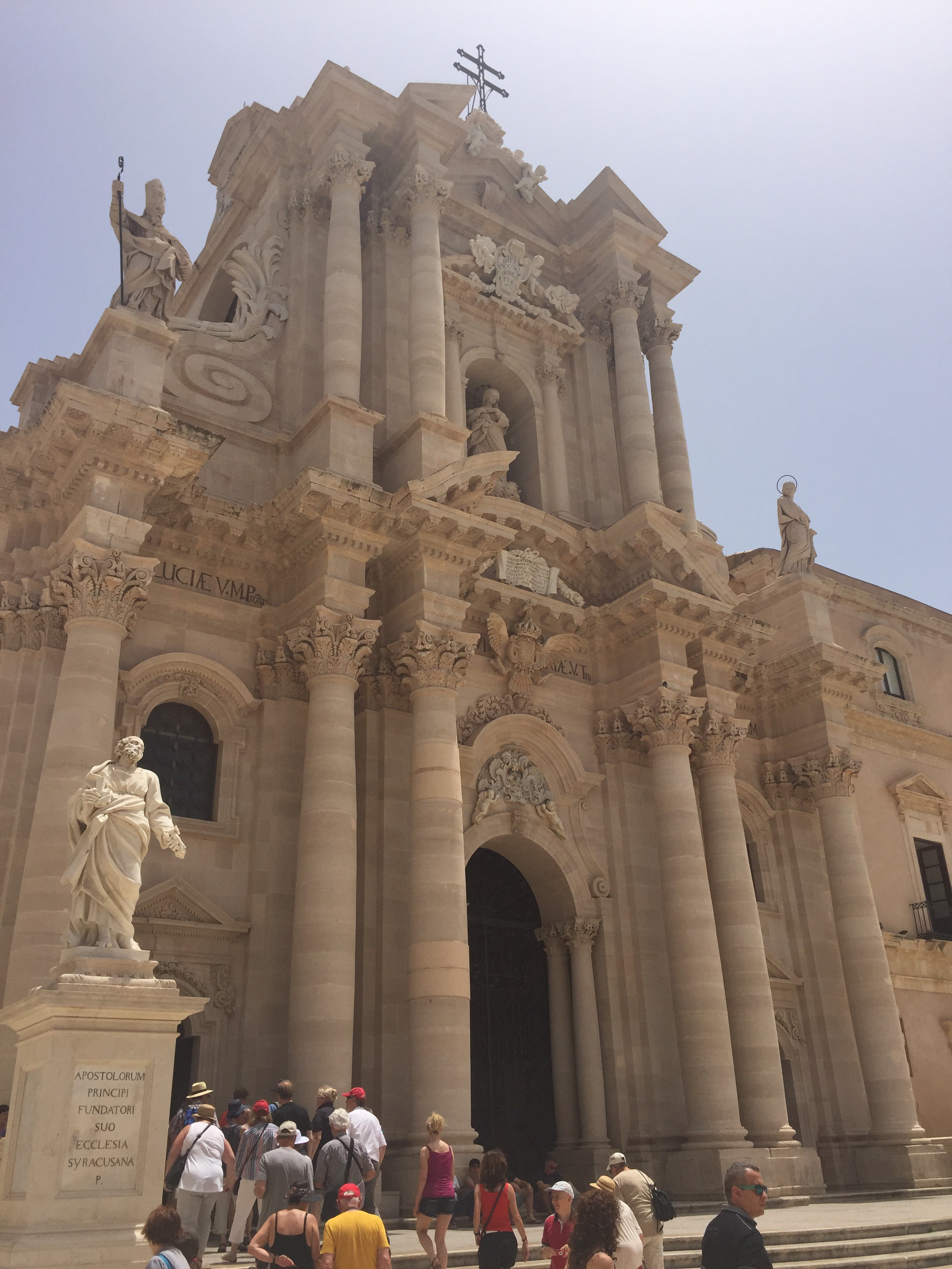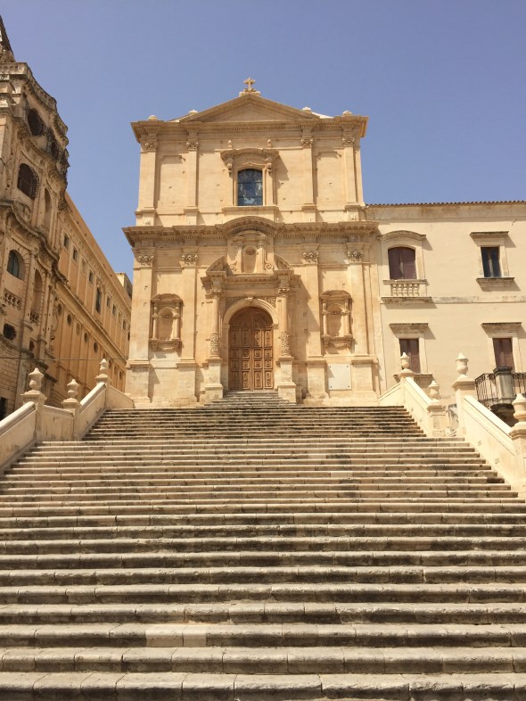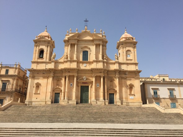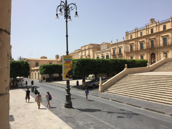We hired a car for a couple of days and drove to Siracusa and Noto one day. Beautiful. Quite different from Taormina – big spaces, big buildings …. Noto was even grander but bizarrely – no people.