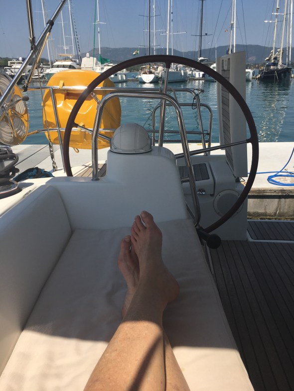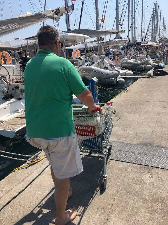 It's very busy in Gouvia Marina – lists of people on holidays and Saturday is changeover day for the charter yachts. Busy, busy, busy.