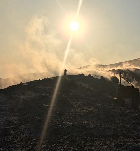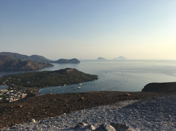 Georgi and I have climbed to the top of the Volcano on Vulcano this morning – Sunday 27th August. Strenuous to say the least and beautiful up here.
