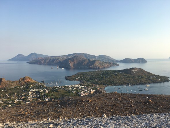 We are moored in Porto Levante and the islands you can see in the distance are Lipari and Salina.