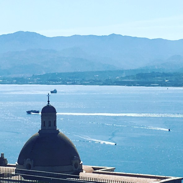 Scilla on the mainland – just before the Straits- then Taormina and Siracusa.