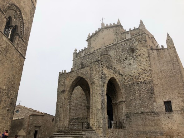 700 m above Trapani sits Erice – a Saracen town with a Castle and 80 churches! It is tiny and dates back to 400 AD. everything is stone or marble. Marble streets which are slippery, you have to be so careful as the streets are steep. The castle floats off the edge of the cliff and there are views in every direction. It’s much cooler and completely different vegetation. A cable car takes you up there from Trapani.