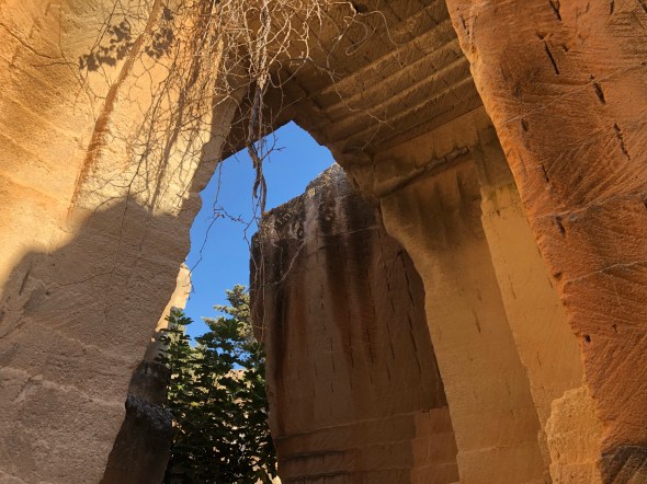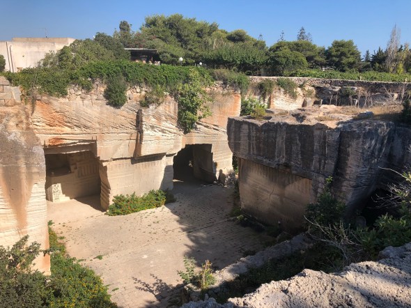 An amazing garden planted in the quarries made by the tufi miners. The limestone here has been quarried and sent all over Sicily and Italy. The result is deep pits which have been utilised for gardens – away from the wind and cool and shady. It is unique.