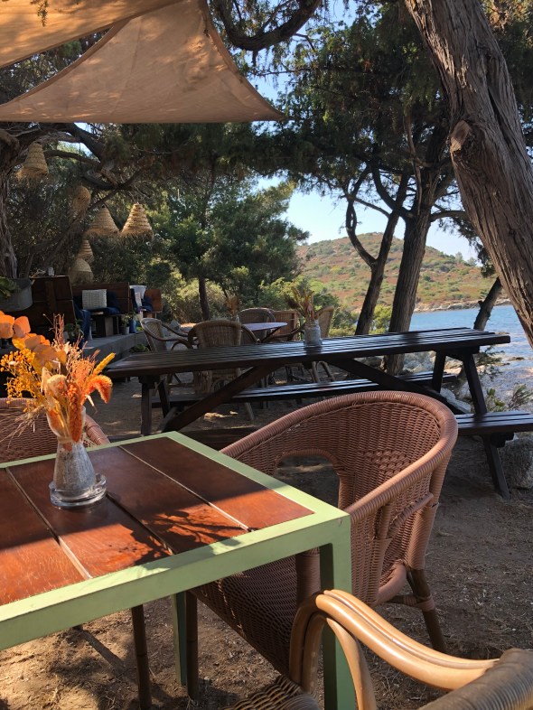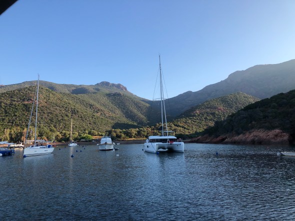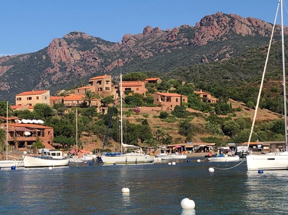 We anchored at this beach bay for the night. With sandy bottom and clear water there are great anchorages and a very cute beach bar where we discovered the French version of Aperol Spritz – Cap Spritz. Delicious.