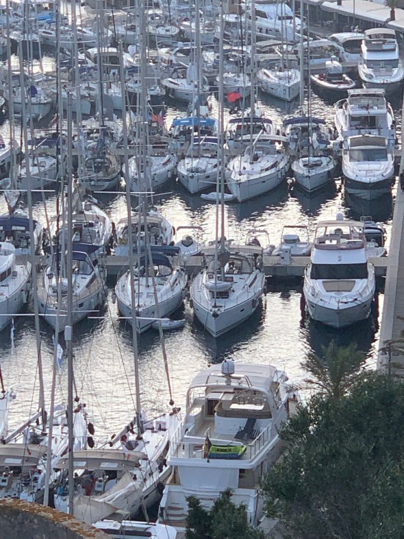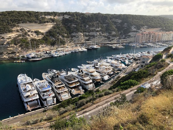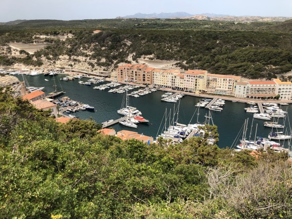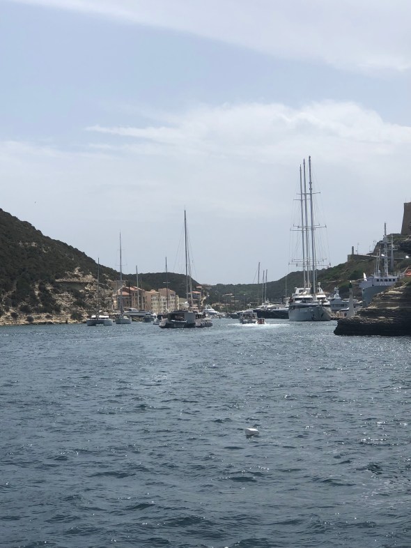 The entrance into Bonifacio is no more than a gash in the cliff. From a distance you can see the old town perched high on the undercut cliffs. It is spectacular. Then as you enter you make a sharp right and you are in a busy port completely hidden from view.