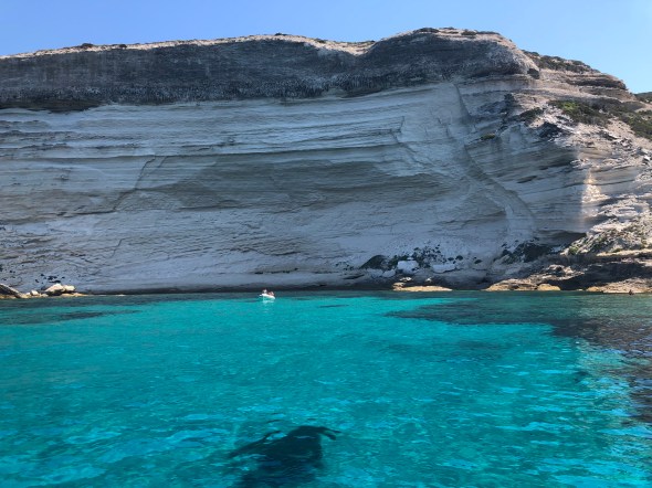 We loved Bonifacio so we are heading back there. The weather is still and hot and we can sail but it allows us to anchor under the shore cliffs of Bonifacio for swim time.