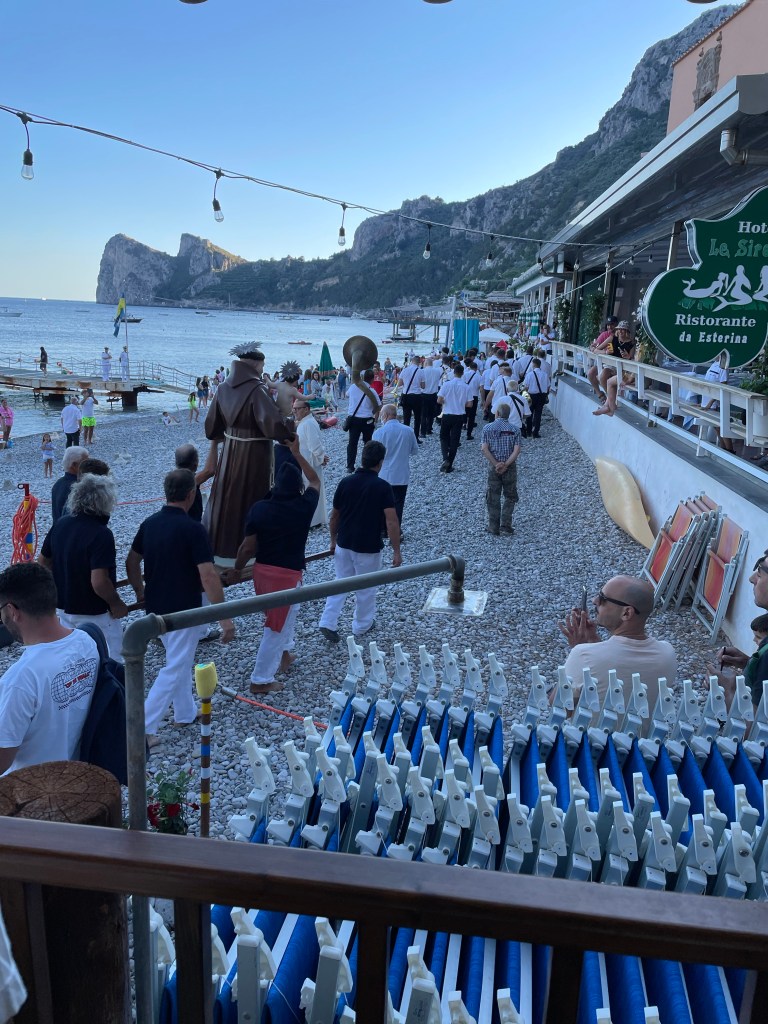 Every village at some point in the year and quite possibly several times a year celebrate the Madonna or the Blessing of the fleet and today was Nerano’s Blessing day. The first in 3 years and hundreds of locals have arrived to get on ferries and head into the bay to Bless the Fleet and Sant’Antonio is on board too