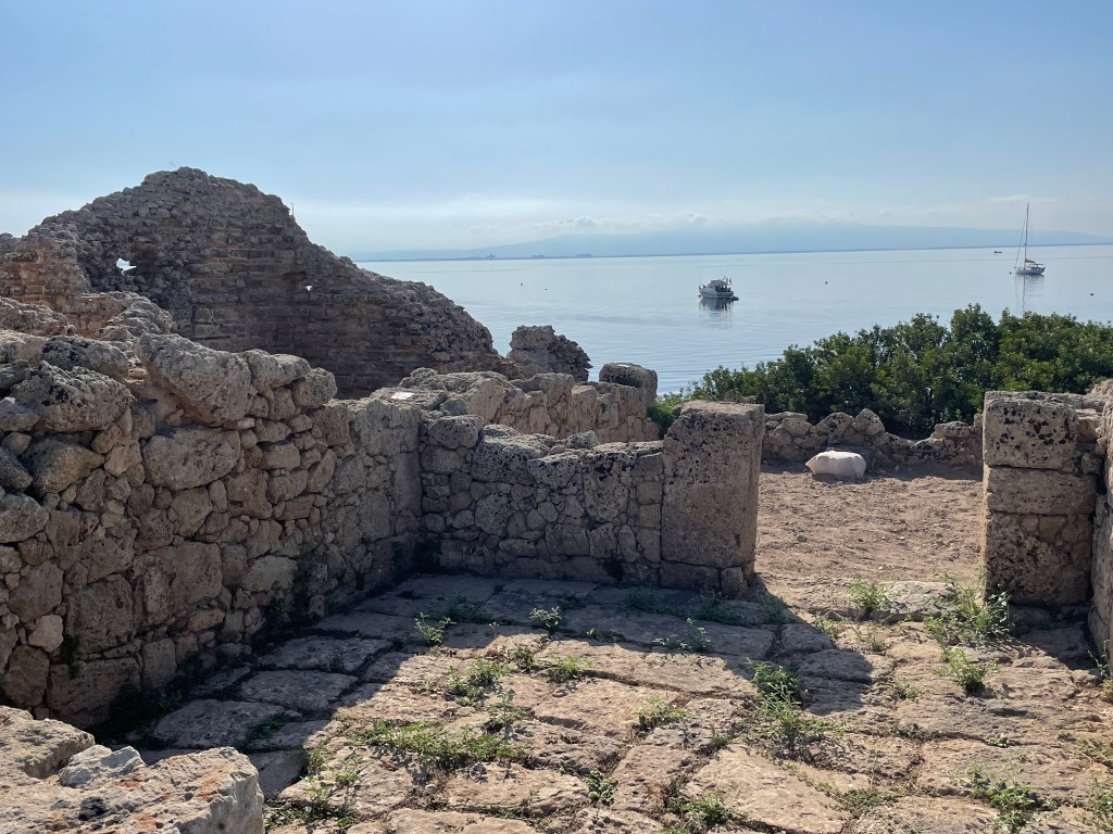 Tharros – an archeological site is our next stop. It is the remnants of a city built by the Phoenicians in the 8th century BC but it was a site already inhabited by the Nuraghi. Both Sardegna and Corsica have prehistoric sites that archeologists continue to discover. The giant standing stones, towers, crypts and wells are to be found all over both islands. The Spanish – Catalans – are also old inhabitants of this west coast and much of the language, food and building reflects their culture.