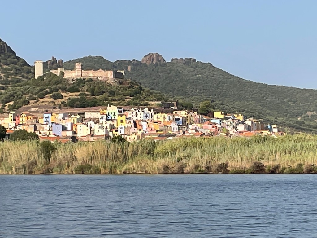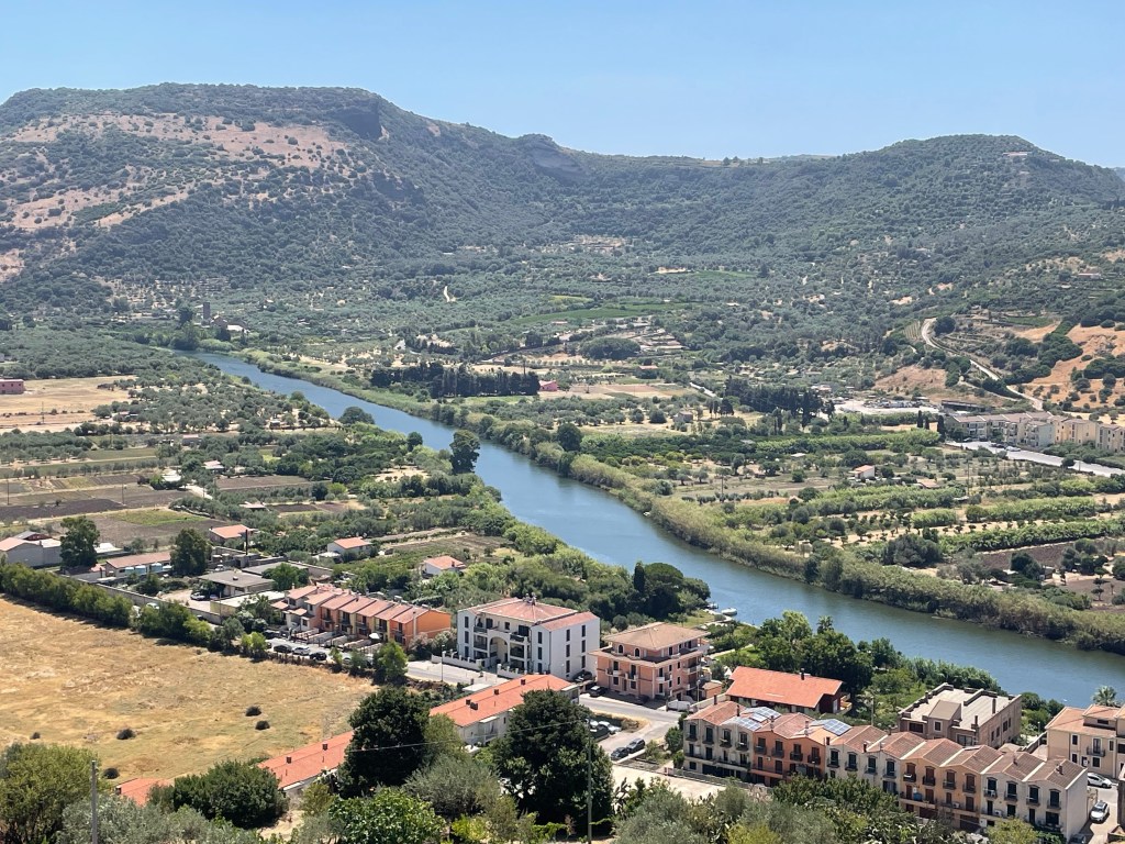 Bosa is our next stop. What is unusual about Bosa is that we need to go up the river to the marina and then the village is another 2 km’s up the river by dinghy. The town is in a fertile valley and was settled by the Spanish in the mid 1400’s. The cliffs at the mouth of the river show you why there is no anchorage outside.