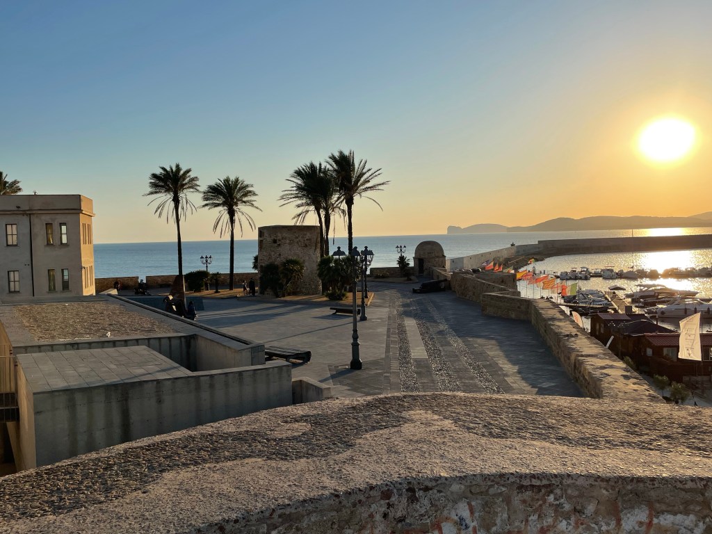 We stayed a couple of nights in Bosa and then into Alghero. Alghero is a much bigger town/ port and has Catalan origins. In fact Algheran’s do not consider themselves Sardegnan. They are quite a different group of people who until the 1970’s lived in a walled city, had their own language and existed in their own right. But then it became necessary to expand and to allow the outside in and vice versa. So they knocked down the ancient walls of the fort that were on the land side and opened the back of the town to the rest of the world. Even they moved out of the old stone fort and narrow streets into new houses, cars and convenience. And of course now that old stone fortress is renovated and with their sea views these properties are now priceless.