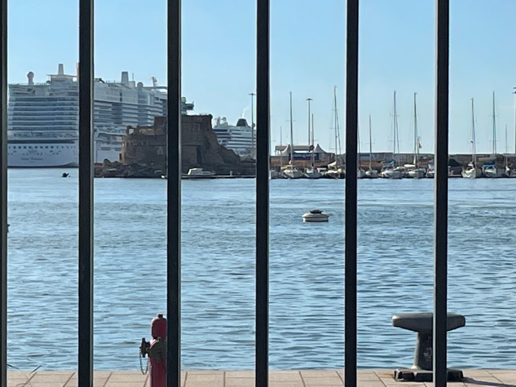 We are continuing our sail home to Rome – with a stop at Civitavecchia just north of Rome. It’s a huge port – in a way the port for Rome where cruise ships and ferries dock. It’s not particularly attractive, industrial with power stations on the shoreline. Where there can be great beauty in Italy it has its fair share of ugliness – mostly current day infrastructure.