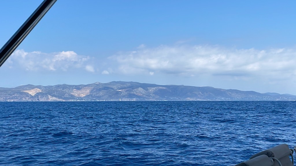We sailed away from Mallorca on Saturday afternoon late. It is 100nm to Barcelona and we need to go now as by midday Sunday the wind is dropping away to nothing. Also we have a fuel problem. It seems that we have ‘dirty’ fuel – bacteria has begun to grow in the fuel and we have very unreliable engine power. So unreliable that we are reluctant to use the engine in case it stops altogether. Not great but also we have sails and can do the distance with wind power and conserve our engine work for entering the marina. And if we need the Sauveters then we will be close to Barcelona and shipyards.