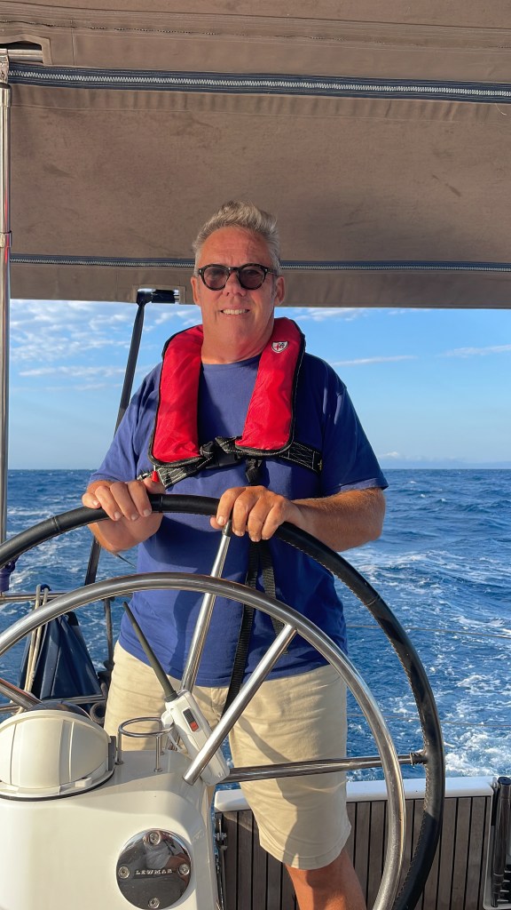 I am writing this as we are en route to Marseille. A couple more hours and we are there. The fuel has played up again but as the day is flat and calm and the boat is hardly moving – the problem seems stable – for the moment anyway. The sails are up and the tear is not too bad. The gaffer tape is holding😂😂