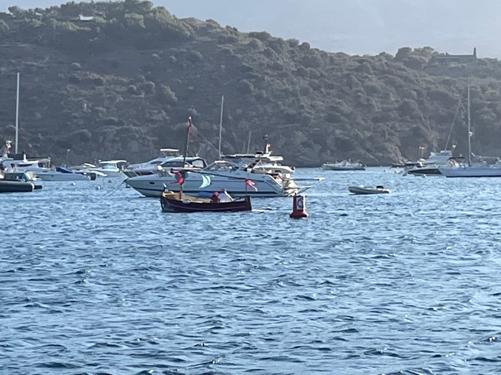 Portlligat and the ‘Bar’ Dinghy moving around the bay selling drinks on Bastille Day
