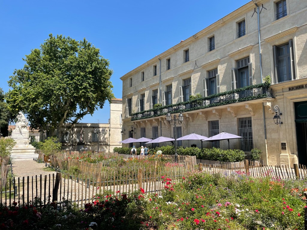 Garden beds lined by picket fences, graceful buildings, fountains and trees – the delights of a French town