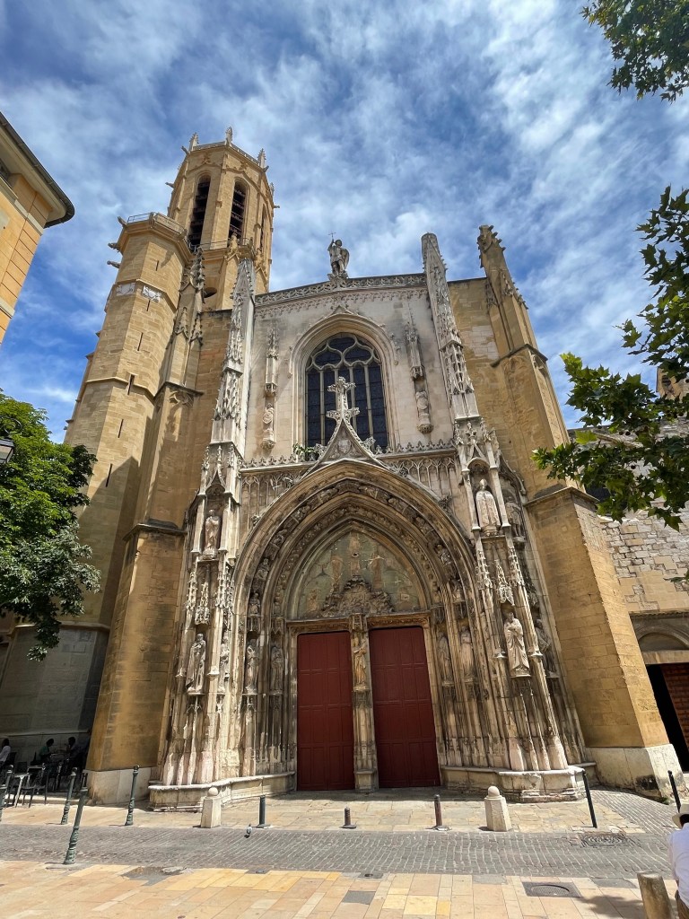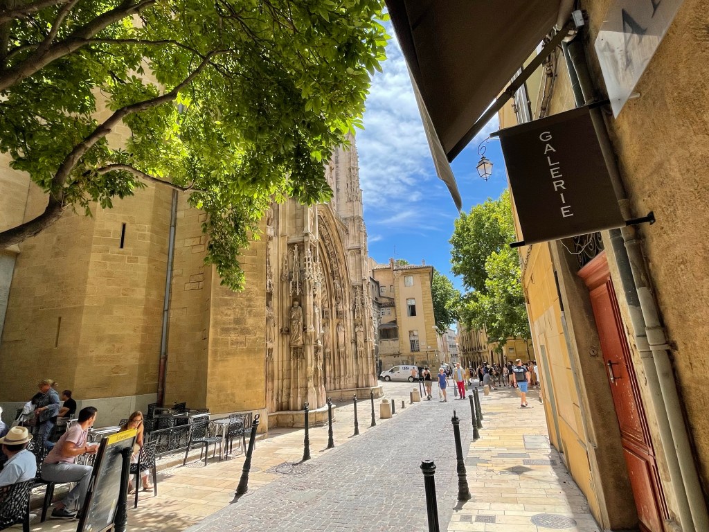 Aix was surprisingly large and modern with a complicated one way road system! But we found a carpark and headed into the Vieux Ville. The old towns are beautiful in comparison to the modern world. Everything is smaller, the stone and the doorways, the door knockers! All charming. Aix is the home of Paul Cezanne and examples of his impressionist work are everywhere.