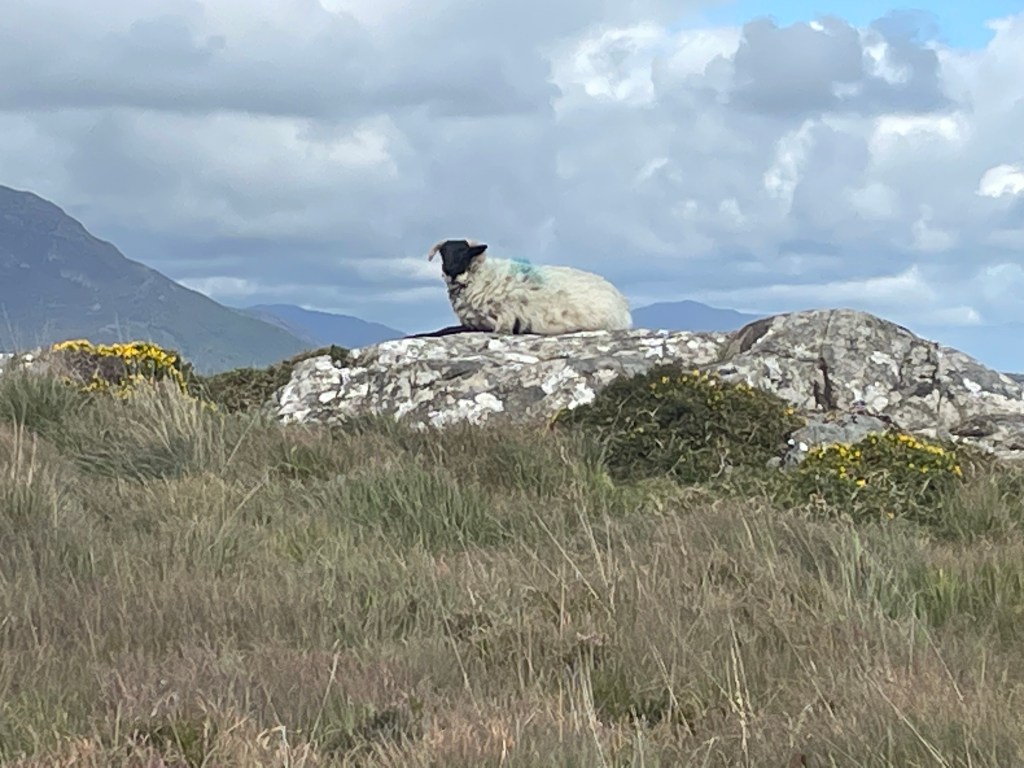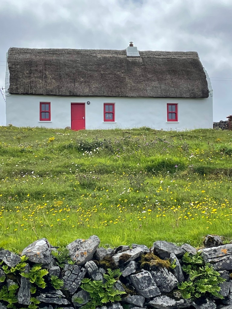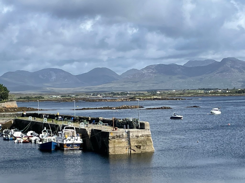 We flew to Dublin and took the bus across to Galway. We had anticipated renting a car but as we arrived 20 minutes after closing time there was no car! Frustrating and then easily resolved as the local taxi drivers were very happy to take us to to Roundstone – 2 hours north of Galway. Actually not that far but very narrow, windy roads. So taxi it was and with great relief we spotted the Aussie flag hanging in the gate post!