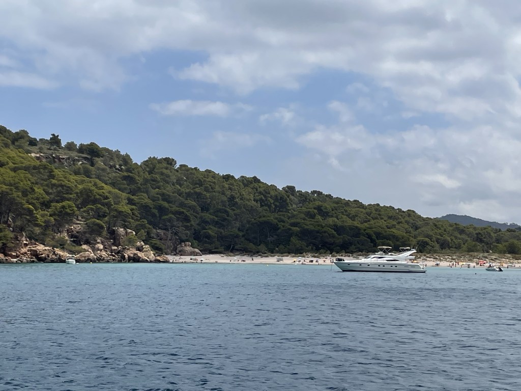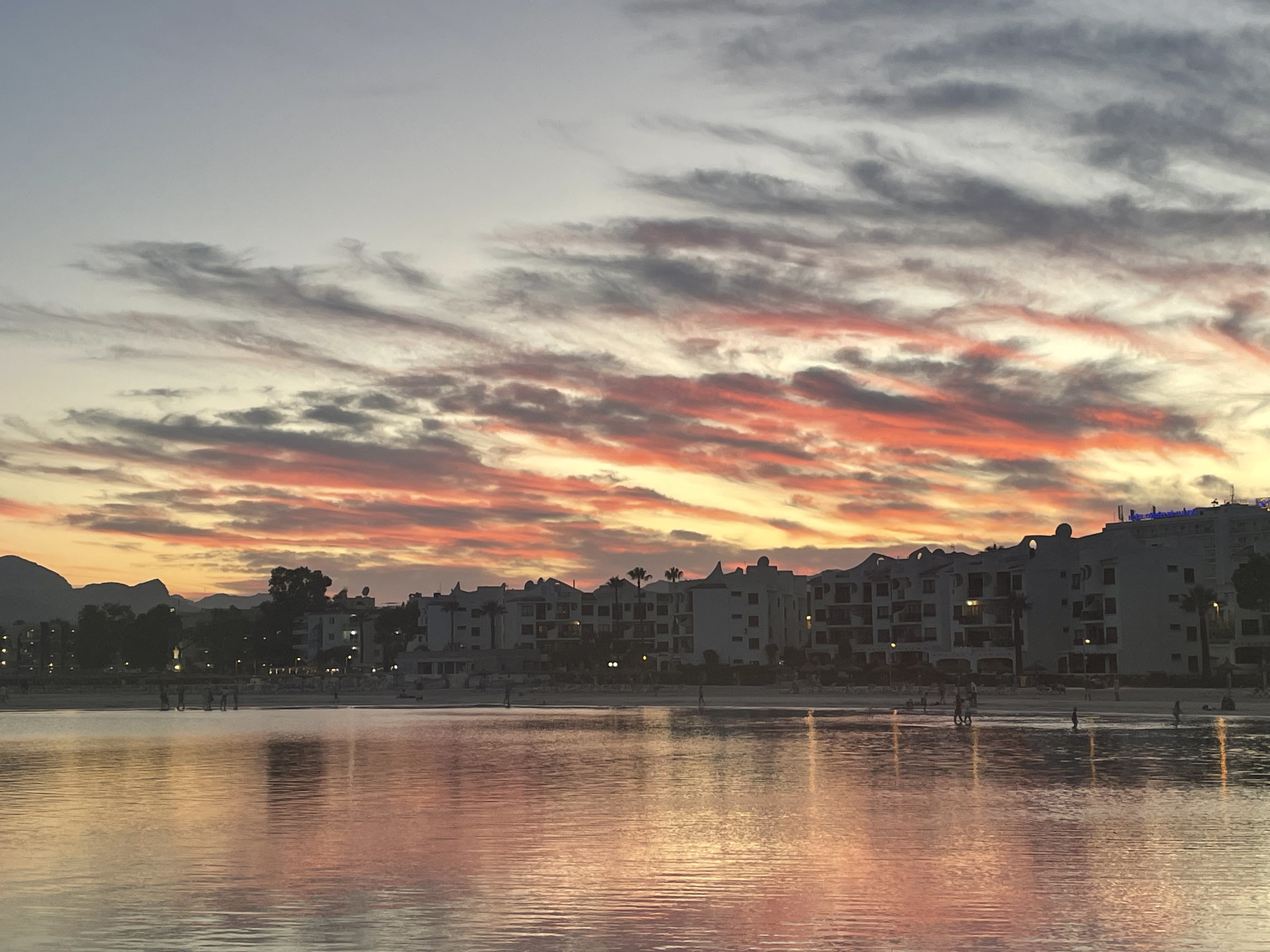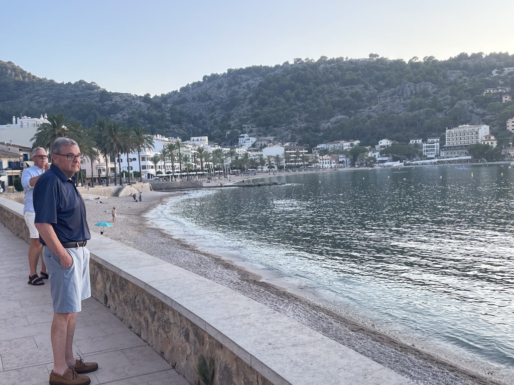 Alcudia is where we are – it is at the eastern end of the island of Mallorca. It is package holiday territory – lots of ‘poms’ wandering the streets waiting for the game. At the same time it is a fabulous holiday place with everything on offer. Big child friendly beaches and facilities. A shallow lagoon with white sand (unusual anywhere in the Med) makes for fun times.