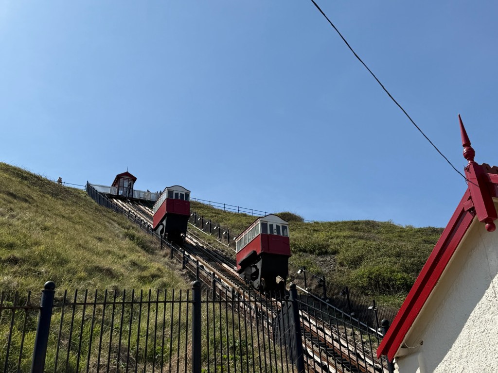 And on Sunday we chose to you to Saltburn – about 30 minutes to the coast – just beautiful. A huge headland, the Cleveland way where you can walk along the wild coast through little villages. Spectacular and Saltburn itself – really nice with big old hotels and Terrace houses facing the sea.