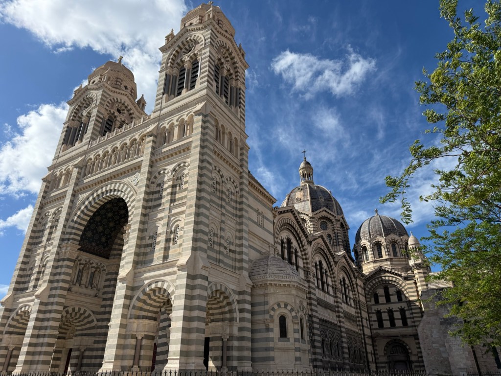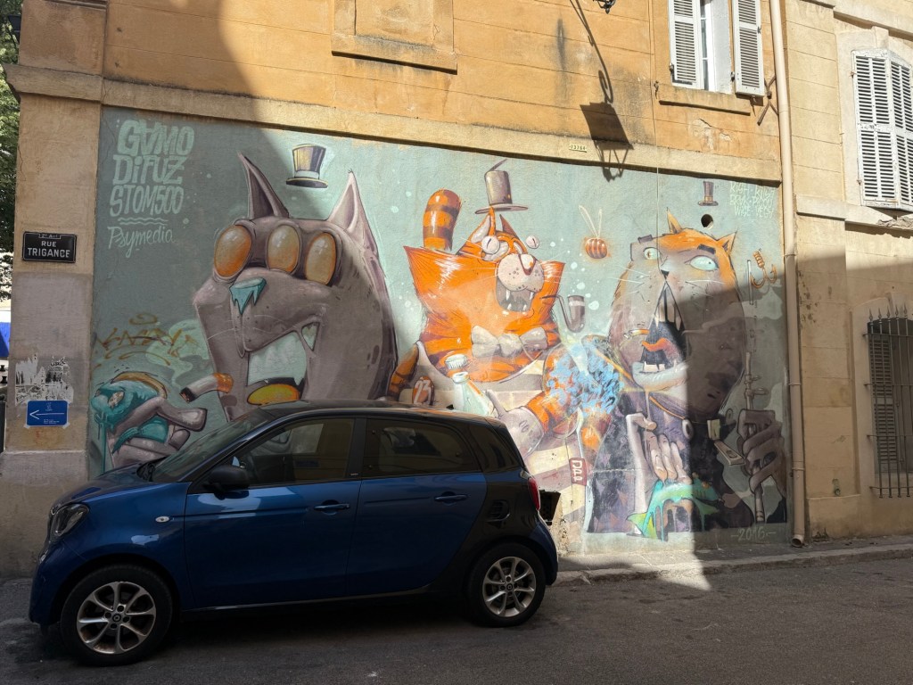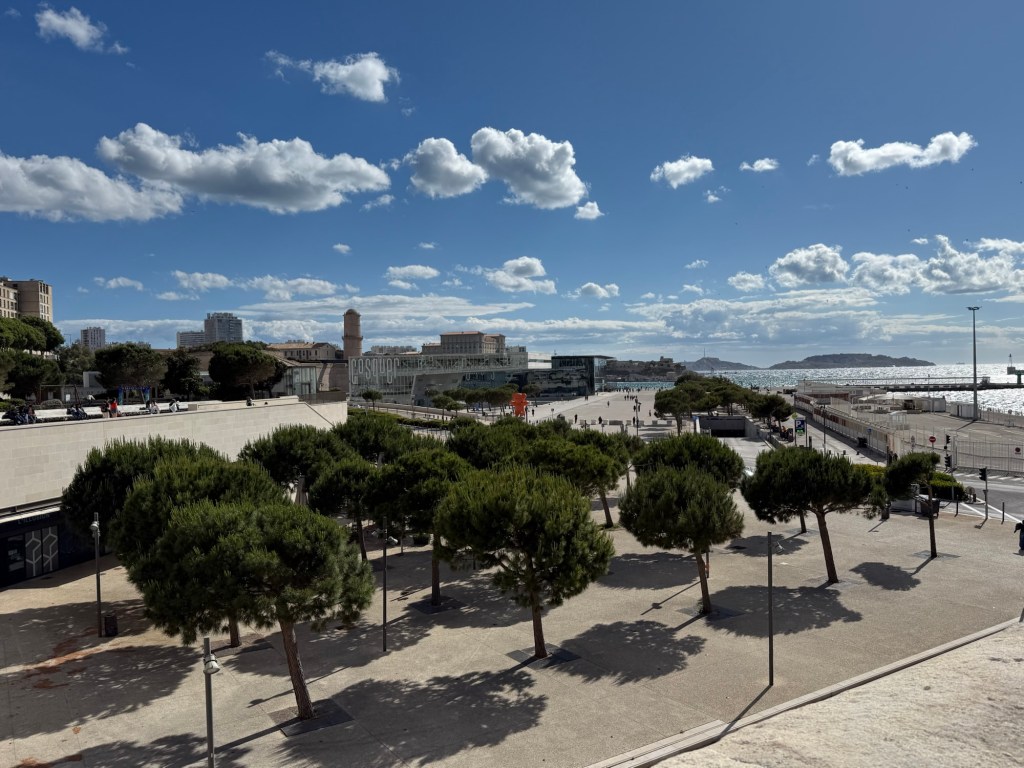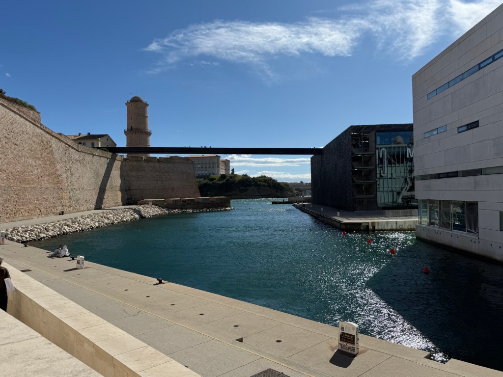 We are in a Hotel in Marseille in the old Port – last time we were in the marina and on the other side of the Port. This is quite a different experience. Huge boulevards – it feels like Paris – trams running down the centre. Very energetic and fun. Lots to see. The Museum area in the Old Port is fantastic and public areas very nice – lots of walking and watching. And food – the bakers, the patissiers, the gelato – all incredible.