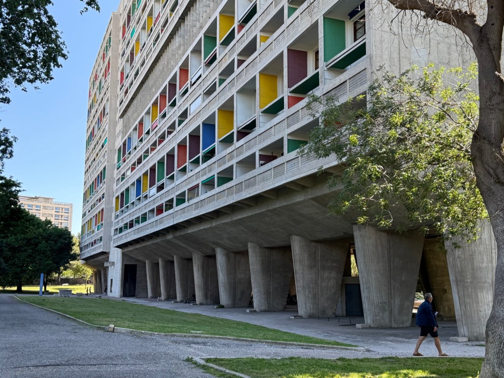 The last time we were in the South of France we drove through Marseille getting hopelessly lost trying to find our way to the Calanques (which did not disappoint!] I was the appointed driver while Bruce was the navigator…and while semi-hysterical trying to work out where we were and how to get out of the city, he screamed.. ‘the Corbusier building!’ I nearly drove off the road!! Now I want to go back to Marseille and stay there.. looks great..a lived in kind of city..
