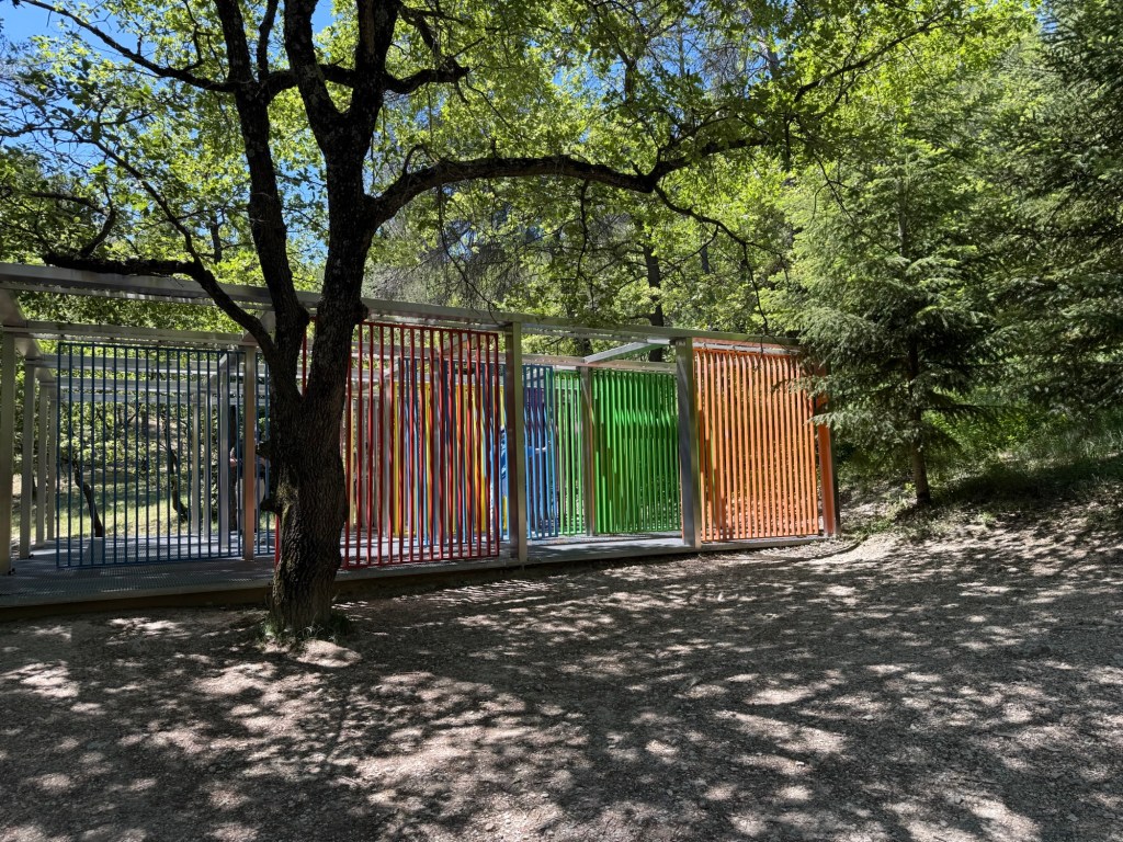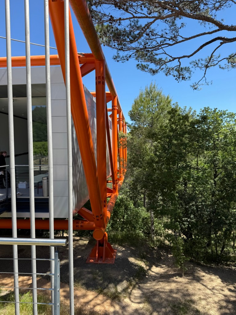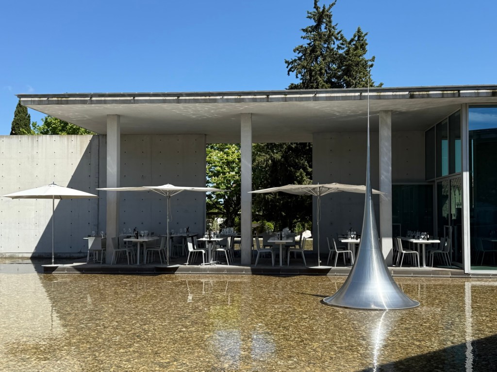 Aix-en-Provence – we have arrived to meet Alex, Stephen and Francesca and we are having a few days here and in Cassis. Aix is gorgeous – full to the top of beautiful buildings, food, art – and lots more. Also quite nearby is Chateau Lacoste. It is a winery/ hotel/sculpture park – huge with several pavilions dotted around the extensive grounds designed by “Starchitects”. A real pleasure to be there – food and wine offerings too very nice. we hired a car and drove out there for the day. Being in the green is lovely.