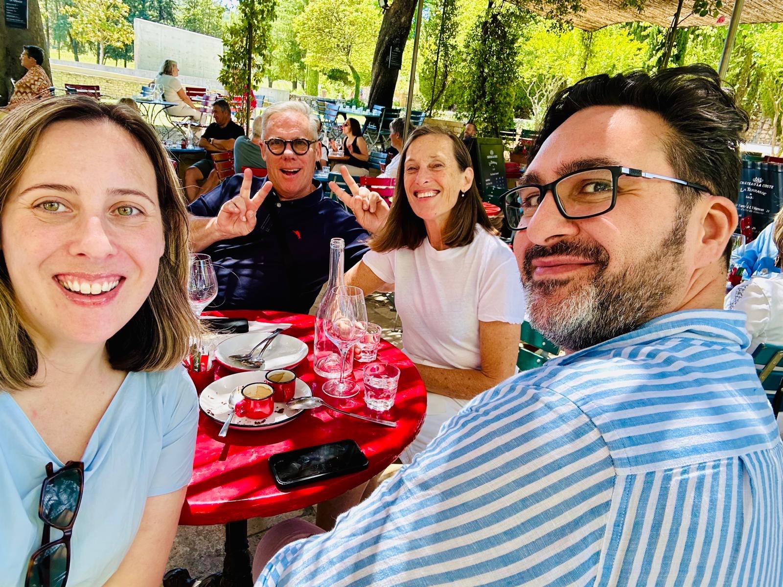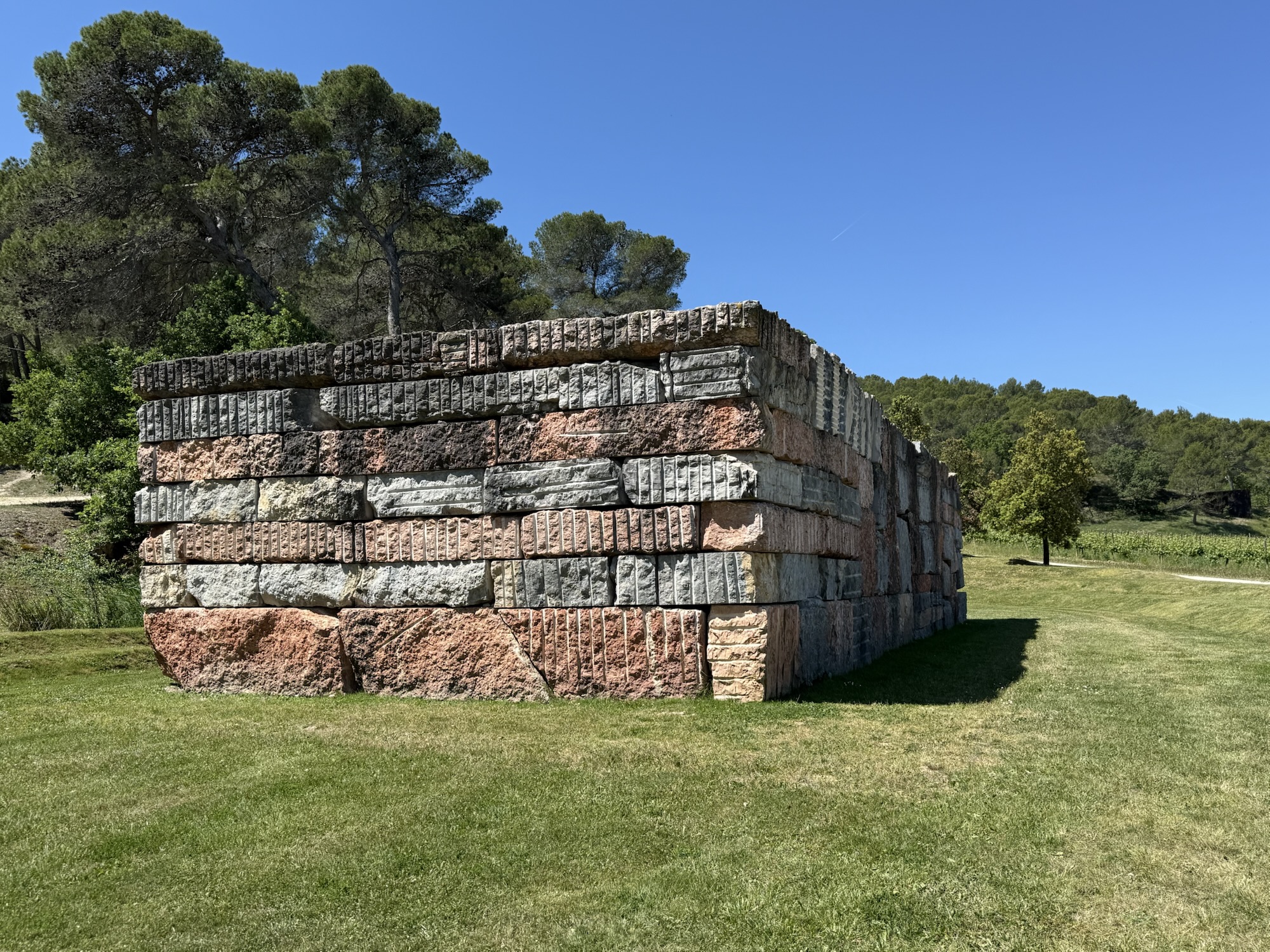 Aix-en-Provence – we have arrived to meet Alex, Stephen and Francesca and we are having a few days here and in Cassis. Aix is gorgeous – full to the top of beautiful buildings, food, art – and lots more. Also quite nearby is Chateau Lacoste. It is a winery/ hotel/sculpture park – huge with several pavilions dotted around the extensive grounds designed by “Starchitects”. A real pleasure to be there – food and wine offerings too very nice. we hired a car and drove out there for the day. Being in the green is lovely.