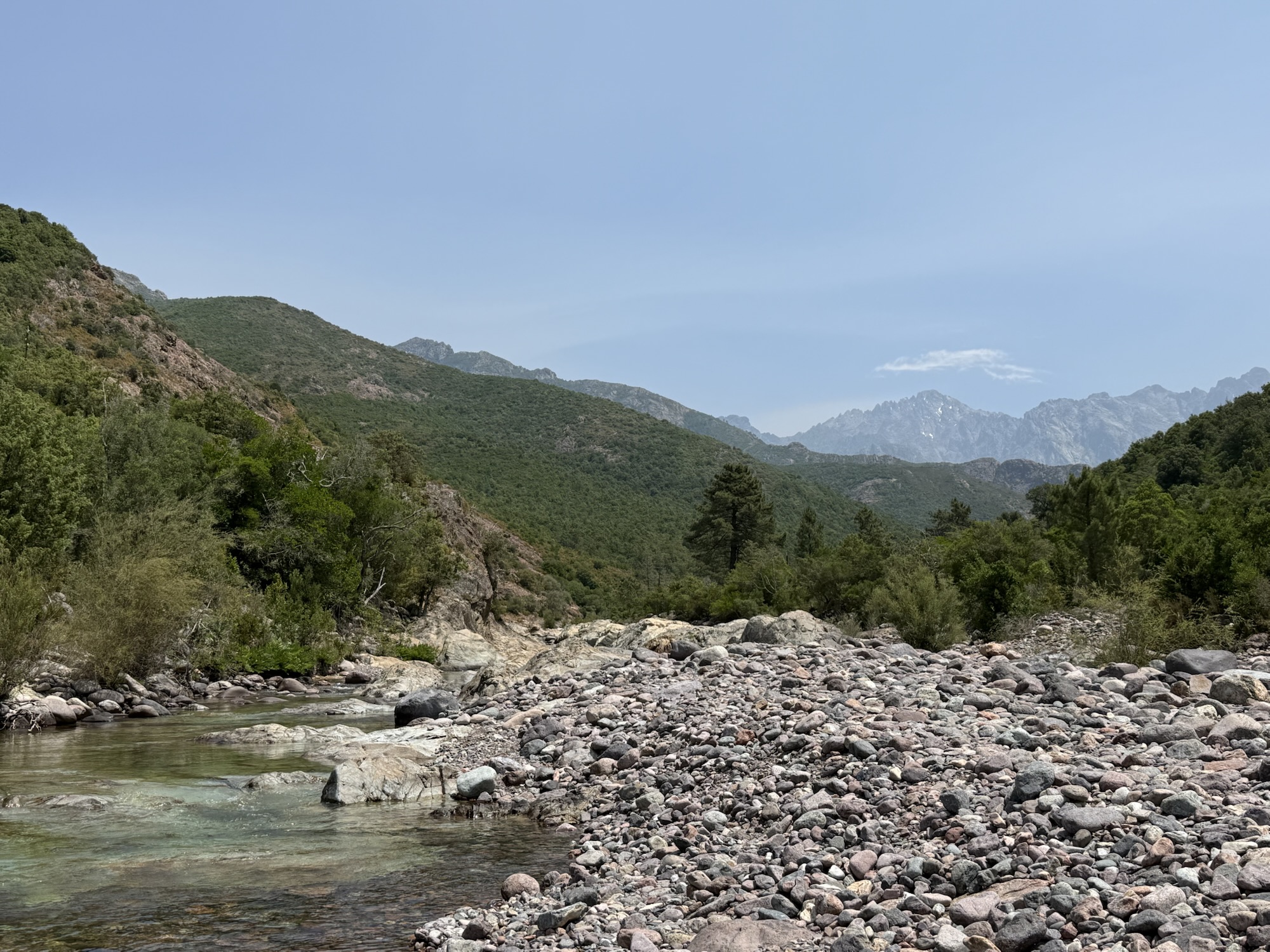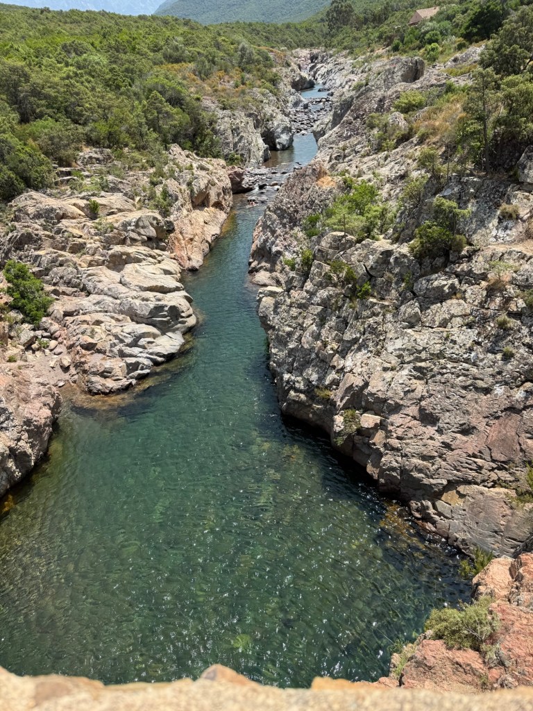 We will be here for 3 days. The wind is going to come up very strong and we will get into the Marina and sit tight until it passes. While we wait for that we hire a car and head into the interior for some stream bathing. It really is untenable being on a beach today but up here in the mountains there are streams flowing – snowmelt mostly – and a few are quite accessible. We weren’t the only ones looking for a cool dip. It was very beautiful and very refreshing. These mountains are seriously big and there is still snow on the northern faces. Corsica is a beautiful wild place and you will never dir of hunger here. The most delicious food everywhere and the Corsicans take great pride if their produce. It is justified.