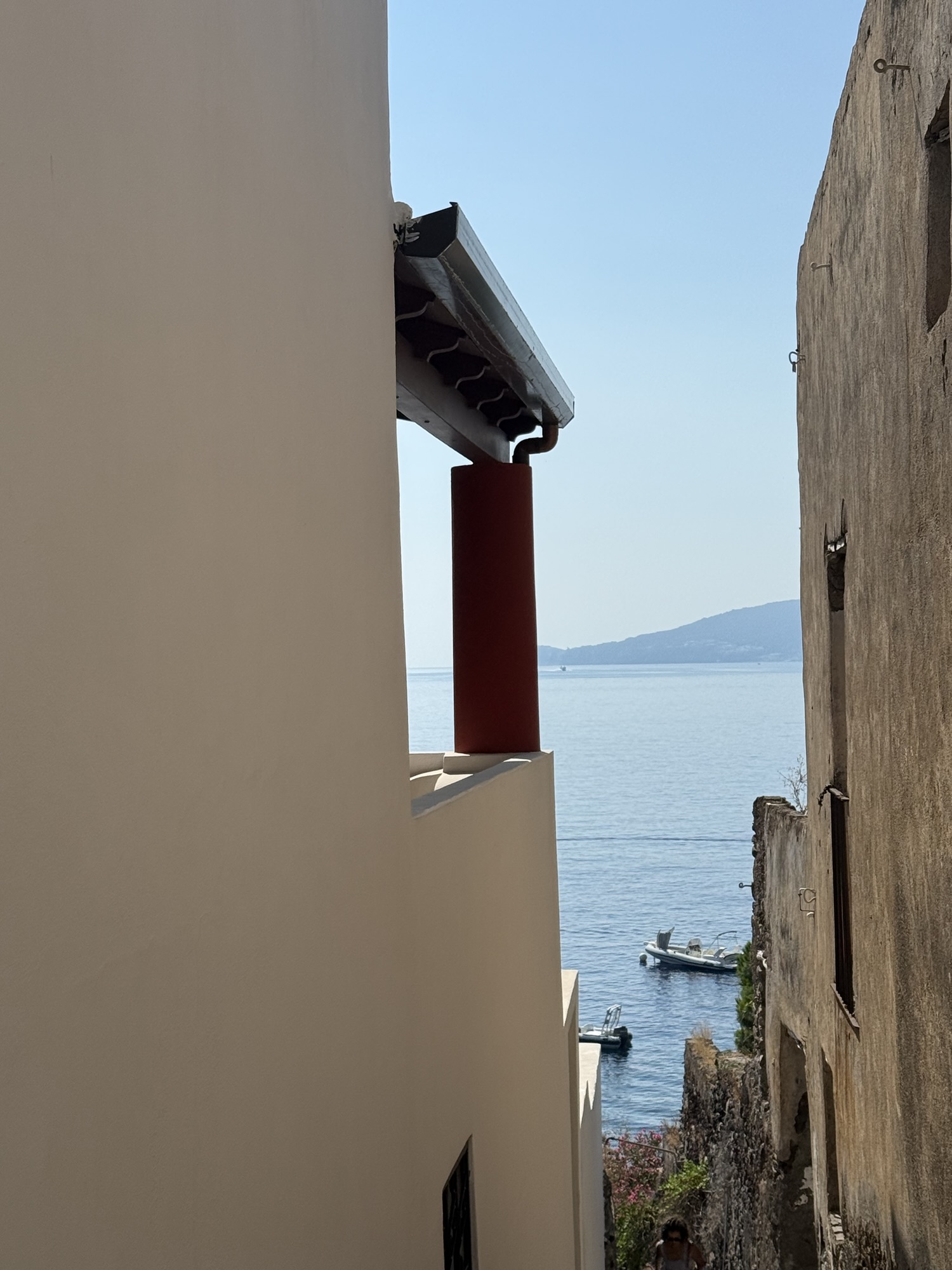 We had never been to Alicudi and Filcudi even though they are quite close to the islands we have visited before. Mainly because in normal weather days you cannot necessarily know that you will get a buoy or that the weather will remain calm enough for you to stay. The Aeolian are notorious for storms springing up and at that point you have to find safe harbour. This weather though is perfect and it is possible to anchor in very close to the north sides os Salina and Panarea. Most unusual. Still no wind, my new sun awnings are coming into their own and swimming and being in the shade is about all you can do. Even contemplating going for a walk on land is too much at the moment. Filicudi also has black granite paths and walls and beaches and even at the start of summer the heat is huge. May and June would be much nicer times to be here. I can’t imagine how it is in August.