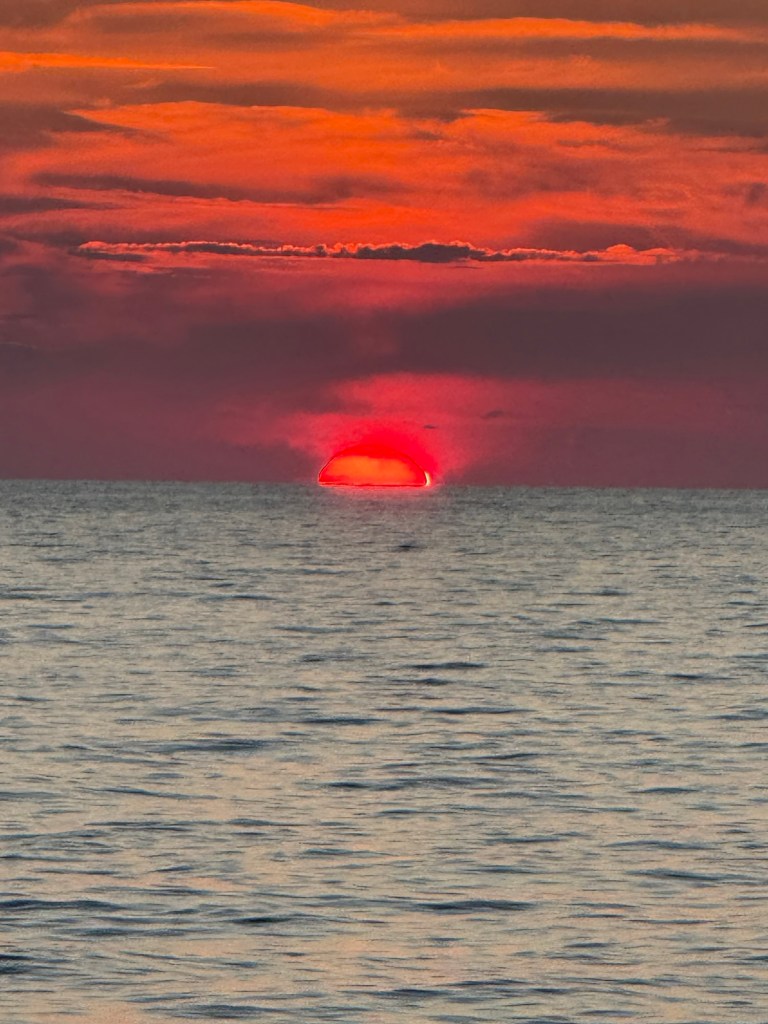 It was a very pleasant sail with a spectacular sunset. And a bonus was that we are travelling parallel to the Italian coast so we can see the lights of Calabria, Basilicata, and up to Capri. Around 4am a great lightening show was flashing through the sky and there are quite a few clouds.
