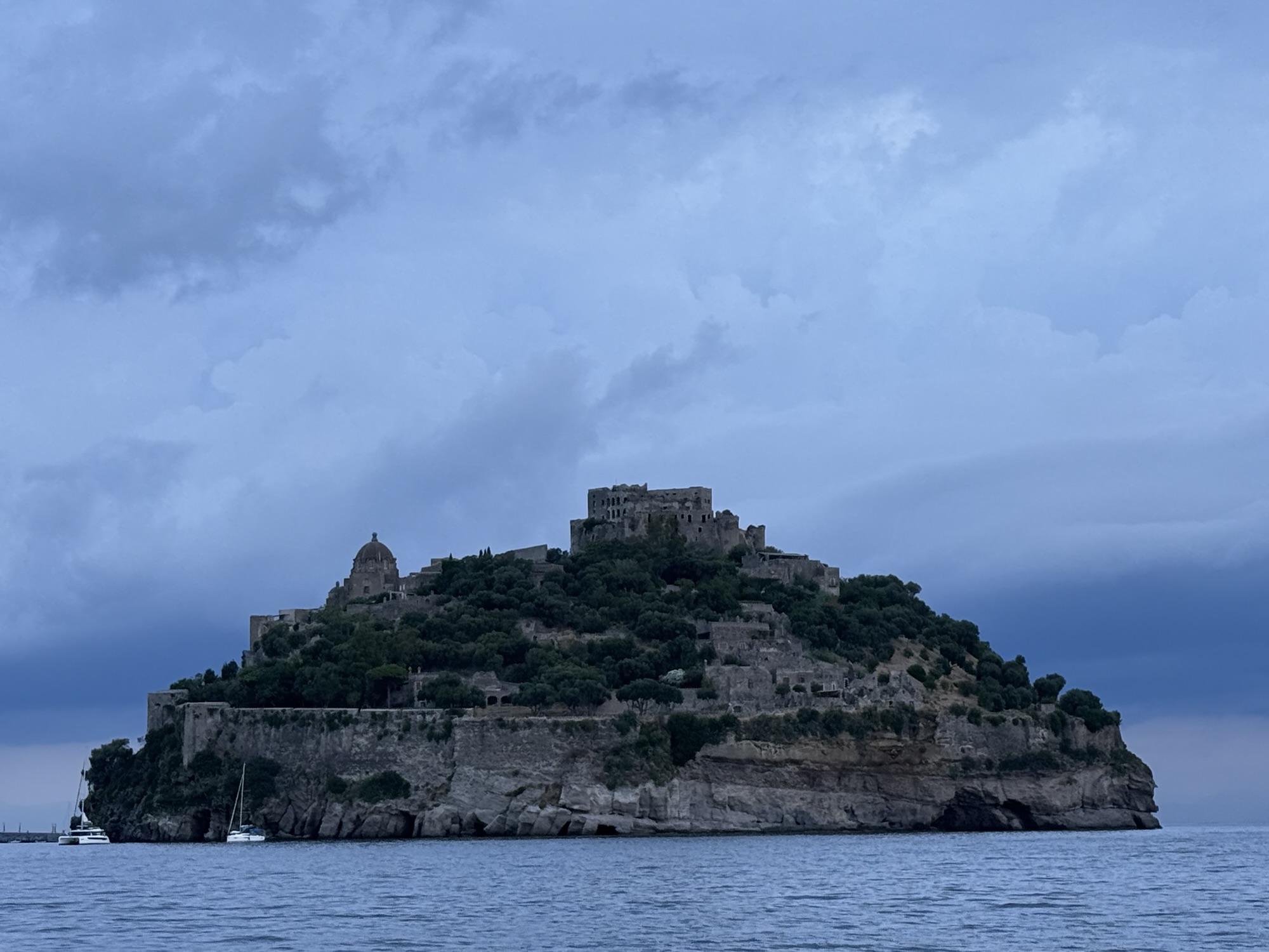 Gabriele and Jurgen are leaving us here – they are taking the hydrofoil back to Palermo which takes about 3 hours. We are heading north now to Ischia – a storm is coming and we have a window to get up there – it seems that this hot weather may be about to break. Storm warnings etc are being issued on all platforms. We will sail overnight. If we leave Salina at 10am we will be to Ischia by 6am – were can anchor under the castle. We know this place and feel confident enough to go.