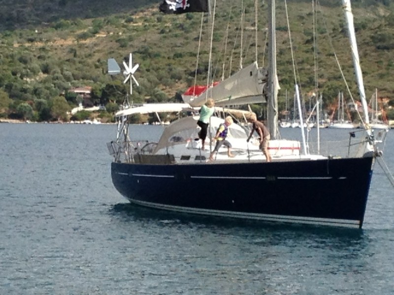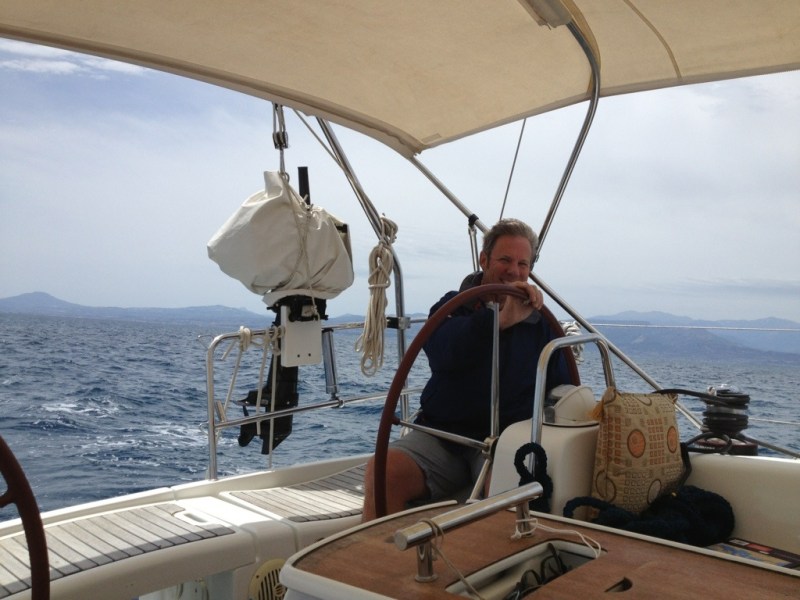 We sailed out of Idhra this morning. We have a clear blue sky, 7 knots of breeze from the North East and we are heading North West. It’s not too…
